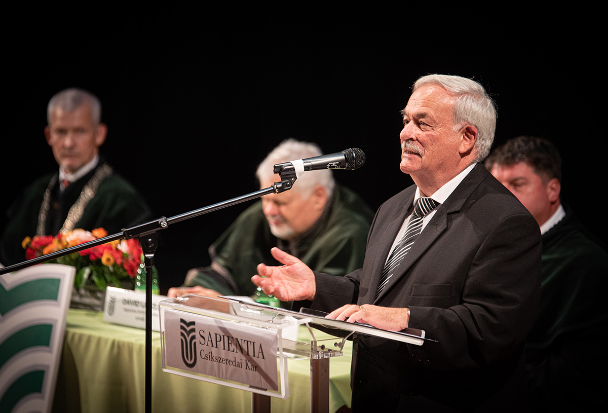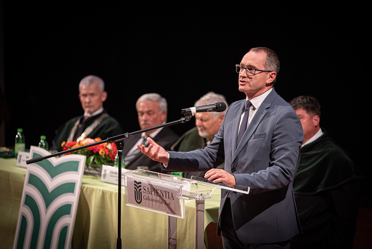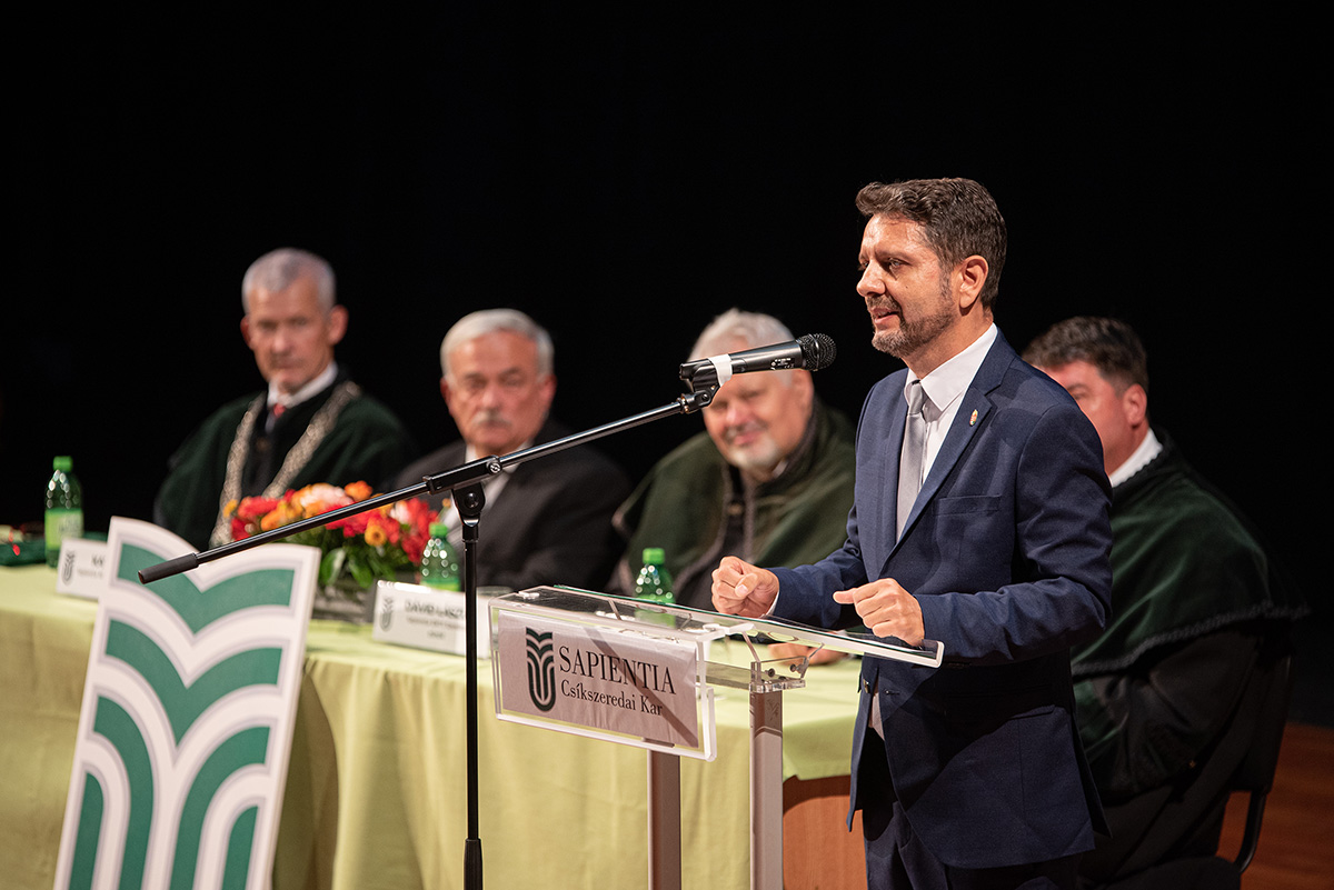 Korodi Attila, Csíkszereda polgármestere is köszöntötte az ünneplő közösséget. Az elöljáró párhuzamot vont az egyetem és a régió folyamatos fejlődése között, hangsúlyozva: a Sapientia Erdélyi Magyar Tudományegyetem bástyája az erdélyi magyar közösségnek, amely hozzájárul az erdélyi magyar társadalom építéséhez. Lázár Ede, a házigazda Csíkszeredai Kar dékánja kiemelte, hogy bár nem mindig volt zavartalan a kar működése, hiszen a világjárvány, valamint épületfelújítási munkálatok nehezítették az elmúlt években a felsőoktatási intézmény működését, így lett, lesz teljes az egyetem. Azt kívánta, hogy a továbbiakban is a mintegy húsz éve elkezdett úton tudjon az intézmény továbbhaladni.