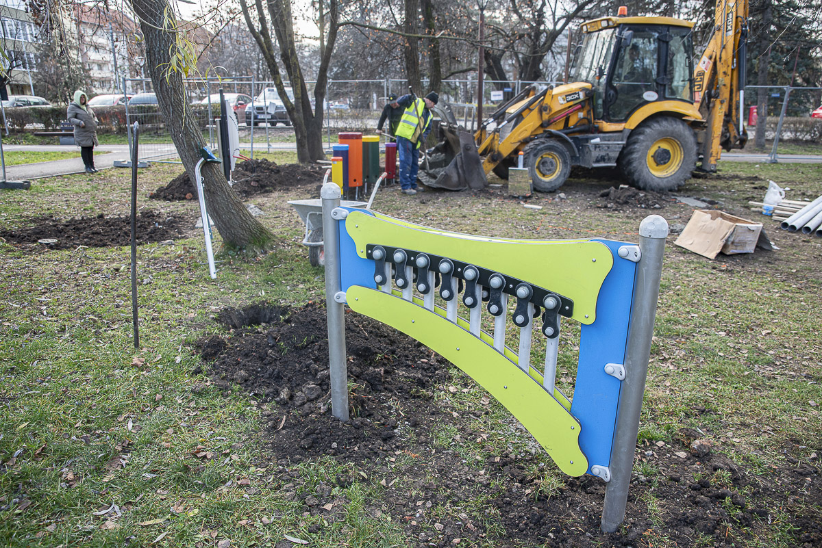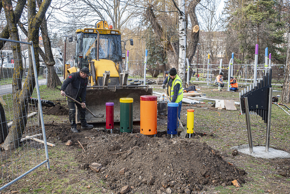 – A Központi park egy részét lezártuk, és elkezdődött a zenepark kialakítása, ahol összesen nyolc darab kültéri, kisgyermekeknek szánt ütőshangszer kap helyet. Ezenkívül bővítjük a játszótéri elemeket is egy csillag alakú kötélmászókával és két új, felnőttek és gyermekek által is használható hintával – tudtuk meg a részleteket a városrendezési osztály vezetőjétől. Lázár Péter szerint a munkálatok miatt valószínűleg hosszabb ideig marad lezárva az új játszótérrész, mivel az elemek kihelyezése után gumiszőnyeggel akarják beborítani a területet, ennek ütemét pedig nagyban meghatározza az időjárás. A zenepark kialakítására és a játszótér bővítésére hozzávetőlegesen 170 ezer lejt költ az önkormányzat.