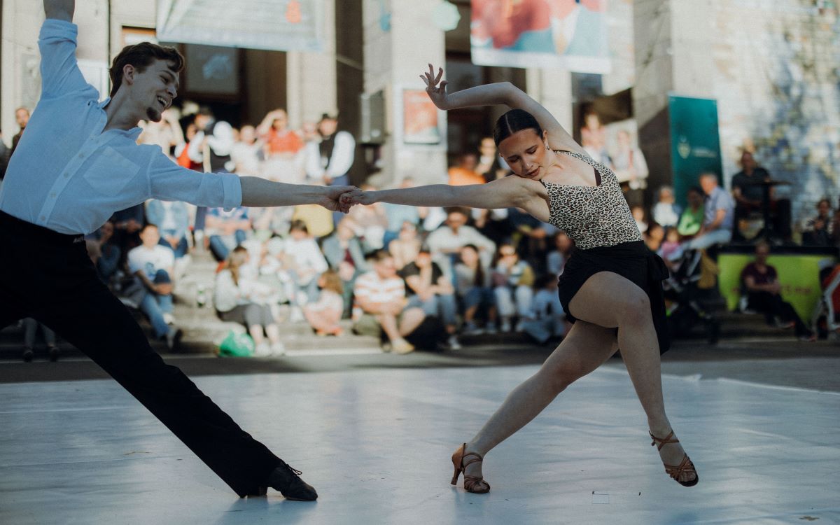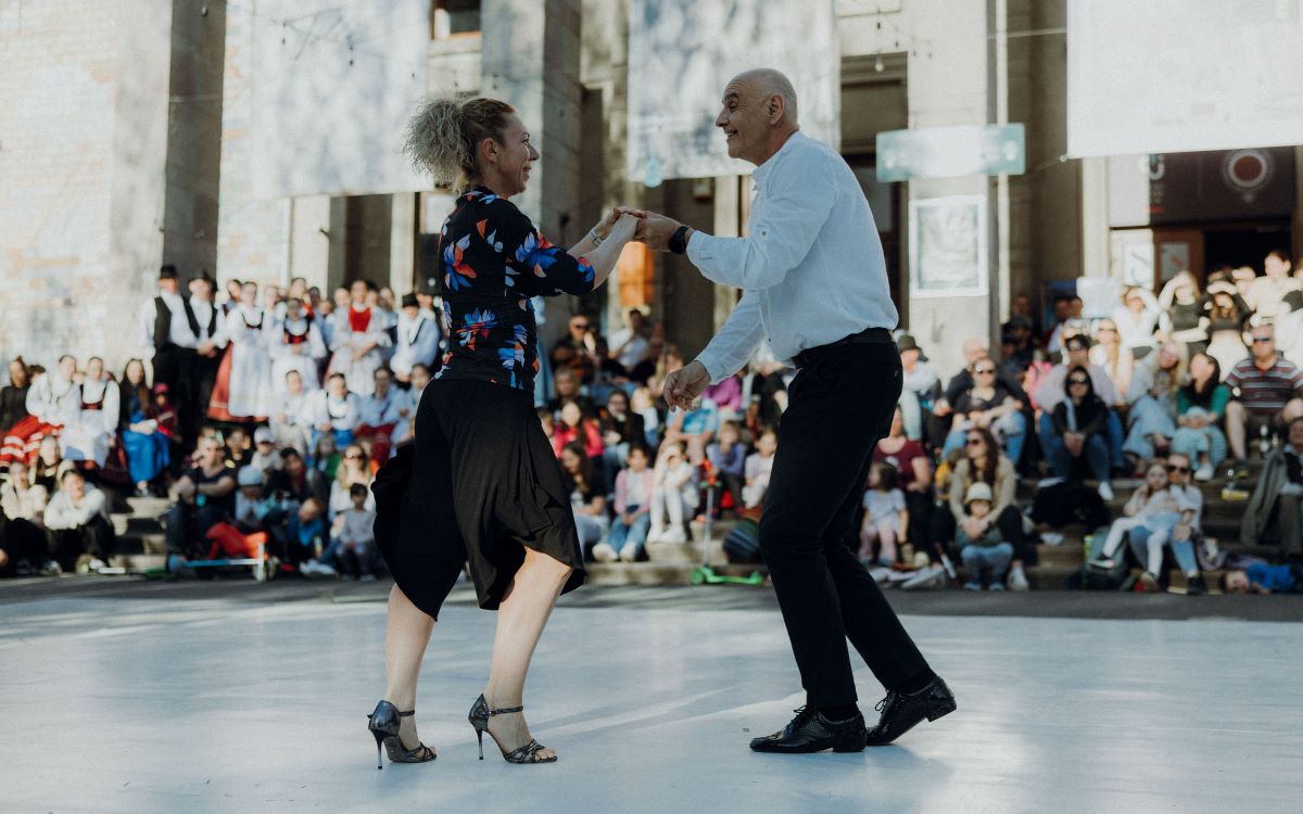A Táncvilágnap Csíkszereda esemény lezárásaként kedden délután kiállítótérré és táncparketté varázsolták a Művelődési Ház előtti teret, ami így egy szabadtéri táncos fotókiállításnak, illetve táncdemonstrációknak és villámcsődületeknek biztosított helyszínt.