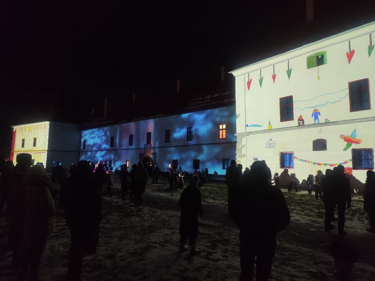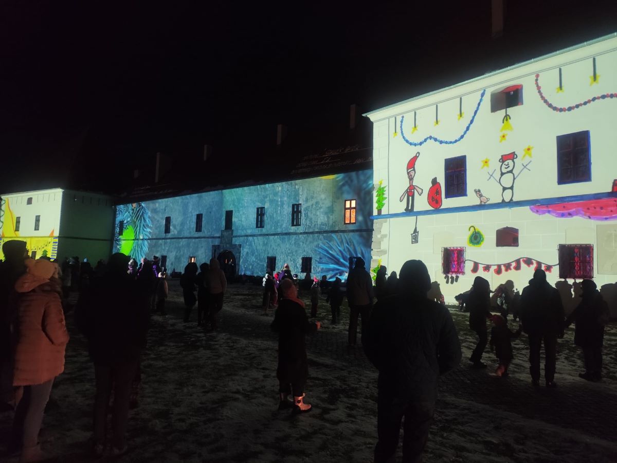 Gyermekrajzokkal festették át a Mikó-vár homlokzatát december 14-én és 15-én kora este. A rajzokat a csíkszeredai iskolák diákjai készítették Mesevilág karácsonykor témában.