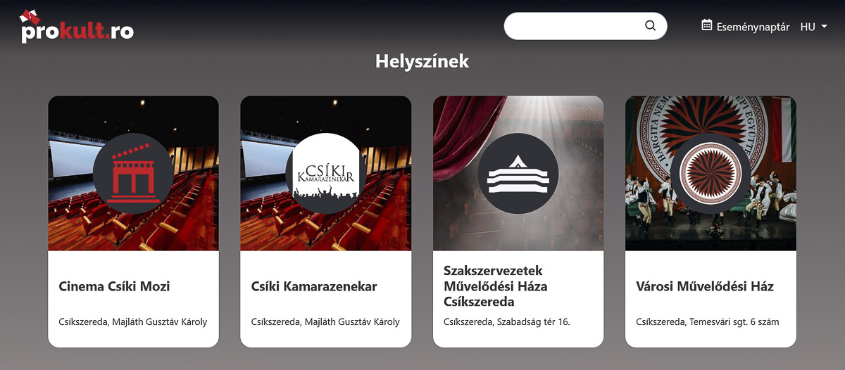 Új, online jegyértékesítő felület vált elérhetővé a napokban, amelyen elsősorban Csíkszereda és a környék jelentősebb eseményeire kínál belépőt: a prokult.ro. A platform célja, hogy egyszerűbbé és gyorsabbá tegye a jegyvásárlást a legnépszerűbb rendezvényekre: színházi előadásokra, kulturális programokra, filmvetítésekre, koncertekre, fesztiválokra és sporteseményekre.