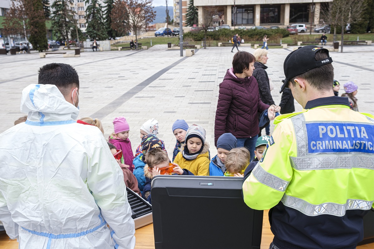 A térre tömött sorokban érkeztek gyermekek a város óvodáiból, valamint magyar és román nyelvű iskoláiból. A helyszínen kipróbálhatták a rendőrautók megkülönböztető jelzéseit, a szirénákat, a radarkészülékeket, a bilincseket, az ujjlenyomatvételt, belefújhattak az alkoholszondába, ismeretterjesztő kisfilmeket tekinthettek meg, játékosan átismételhették a gyalogos és kerékpáros közlekedési szabályokat, kifestősöket és informatív jellegű szórólapokat vihettek haza, és megismerkedhettek a székelyudvarhelyi rendőrség nyomozókutyájával, Neróval is.