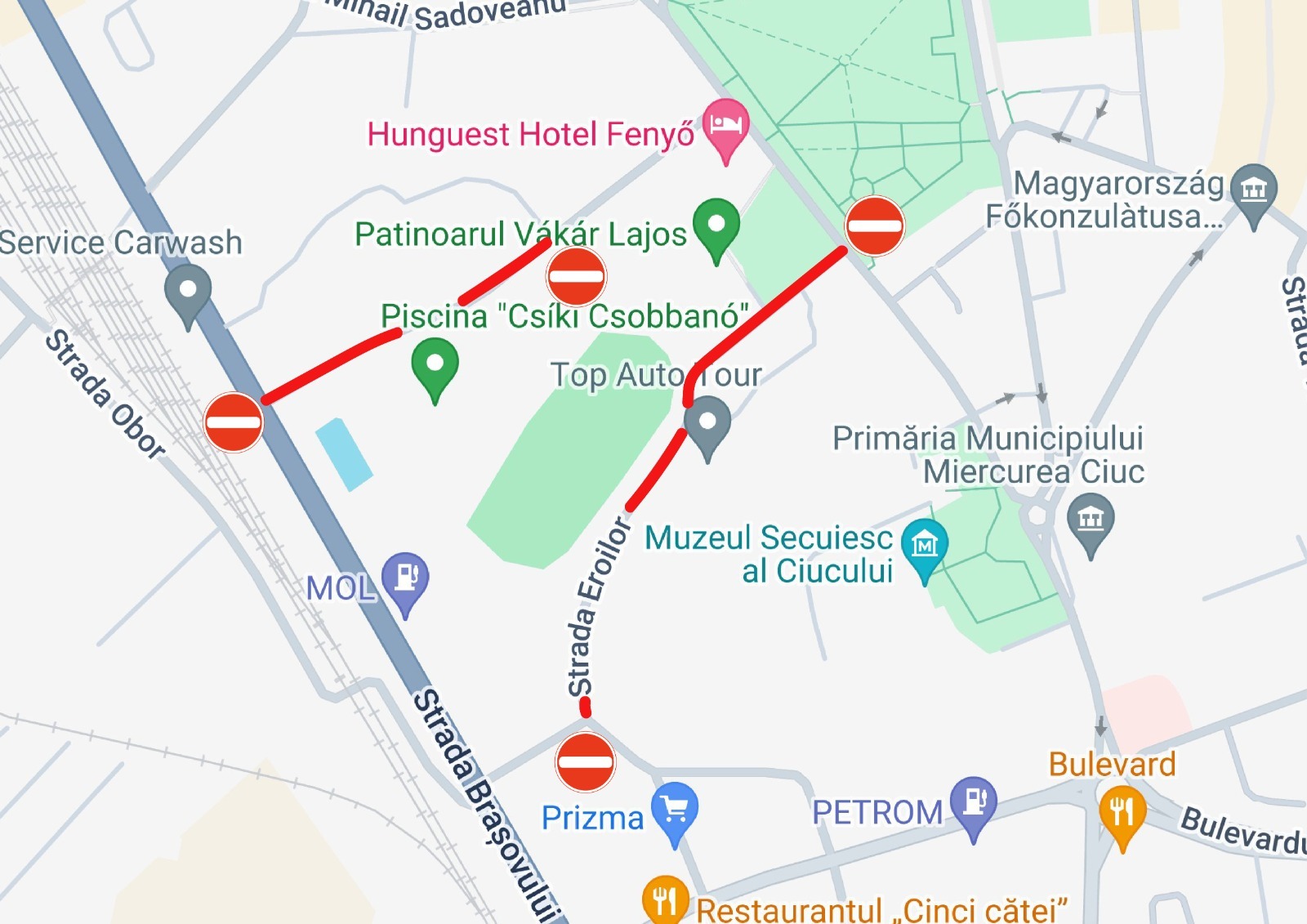 Elmondta: a fesztivál teljes időtartamára lezárják a Csíki Csobbanóhoz tartozó parkolót, ugyanis ott lesz a beléptetés; emellett lezárják a Hősök utcának a Nicolae Bălcescu és a Gólya utca közötti szakaszát pénteken reggel nyolc órától hétfő reggel nyolcig; valamint szombaton reggel nyolctól vasárnap reggel nyolcig a Jégpálya utcának a Nicolae Bălcescu és a Brassói út közötti szakaszát is.