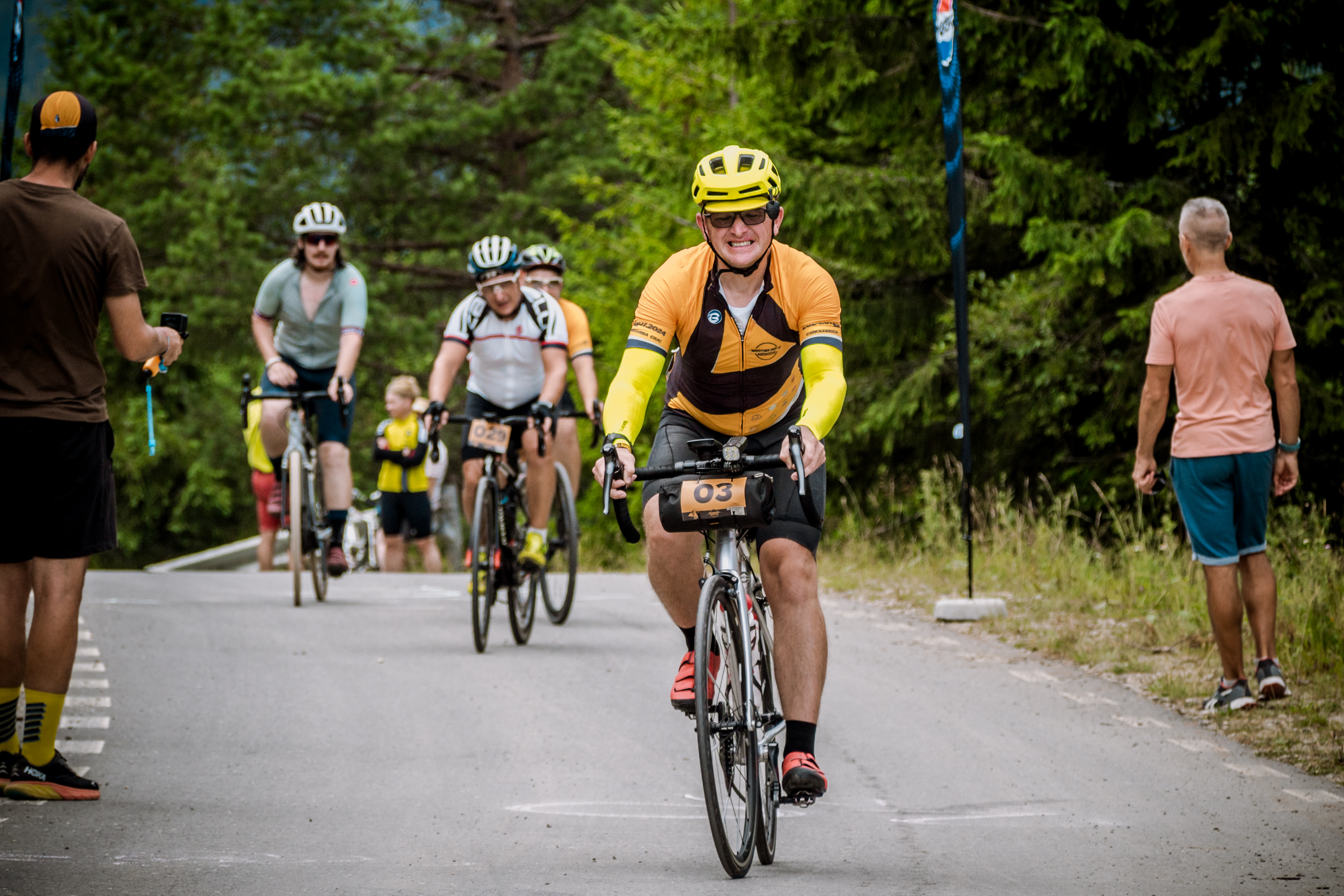 Az országúti kerékpárosok Csíkszeredából, a Szabadság térről indultak reggel hét órakor, Bánkfalva felé haladtak, majd Csíkszentmártonból Csinód felé vették az irányt. Miután „kimásztak” a szerpentines úton a Rugát-tetőre, visszafordultak, onnan a Nyergestetőn át a Sóskútfürdőig tekertek, majd a Csíkszentimrei Büdösfürdőre mentek ki, ahonnan Hargitafürdőre, majd a Gyimesi-hágóra, végül pedig a Szellő-tető felé vezető Motorsirülőre kellett kimenniük, ahol frissítőpont is volt. A kihívás innen kapta a nevét, hiszen ez a szakasz több mint három kilométer hosszú, átlagban 11,3 százalékos az emelkedő, és ez az a rész, ahol a kerékpárosok nem tehetik le a lábukat (Stay on the bike on the last climb!, magyarán: Maradj a biciklin az utolsó mászáson!). Az útvonal itt nem ért véget, a cél a Jakab Antal Háznál volt, ahol vacsorával és hideg sörrel várták a kimerült résztvevőket, illetve itt adták át a díjakat is, este kilenc órakor.