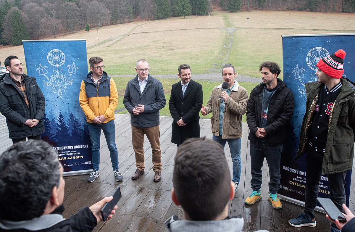 A már mindenki által jól ismert Bagossy Brothers Company slágereket népzenei köntösbe bújtatva, népzenészek és -táncosok bevonásával, népi hangszerek megszólaltatásával készült el tavaly év végén a zenekar legújabb, Csillag az égen című albuma és koncertműsora. Ezt hozzák el június 14-én a csíksomlyói nyeregbe, így a dalok itt csendülnek fel elsőként Erdélyben. A színvonalas koncertműsor tudnivalóit a majdani koncerthelyszínen ismertették csütörtökön.