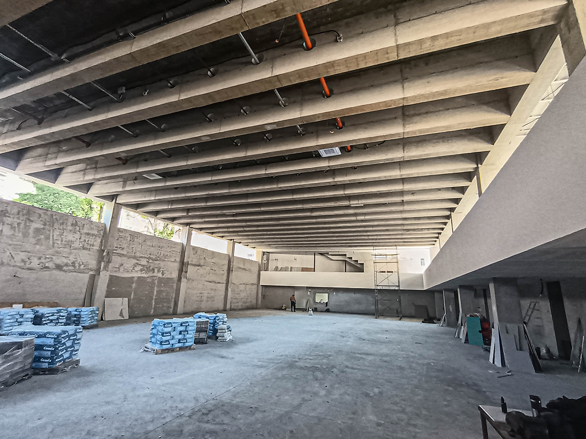 A Petőfi Sándor Általános Iskola udvarán 2021-ben nyílt meg az építőtelep. Az eredeti tervek szerint 2022-ben be kellett volna fejezzék a beruházást, de előre nem látható események hátráltatták a munkálatokat. A legfőbb probléma az volt, hogy a Csíkszeredában más nagyléptékű munkálatokat is végző kivitelező, a bukaresti Niliten Construcții Kft. túlvállalta magát, és sokáig nem állt rendelkezésére elég munkás, megfelelő munkaerő. Ugyanakkor régészeti feltárás miatt is hosszabb ideig felfüggesztették az építkezést. Amíg a múzeum szakemberei el nem végezték a szükséges kutatásokat, a munkálatok nem haladhattak. Idén májusra a kivitelező cég alkalmazottai többek között elkészítették a vízzáró réteget az épület tetején, majd a hőszigetelő rétegek elhelyezése, illetve a járófelület kialakítása következett, ugyanis a tornaterem tetején szabadtéri sportpálya lesz. Jól haladtak az épületgépészeti munkákkal is.