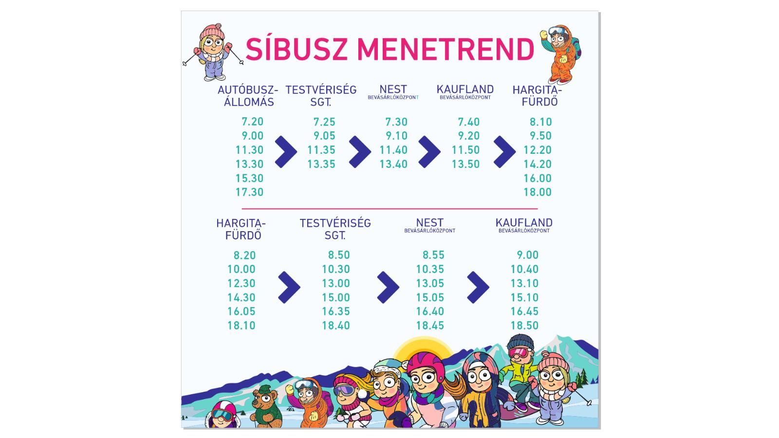 A síszezon kezdetével a csíkszeredai Csíki Trans Kft. szombaton elindítja a síbusz-járatokat, amelyek Csíkszereda és Hargitafürdő között szállítják majd a síelni vágyókat. A buszok Csíkszeredából a buszpályaudvarról indulnak – érintve a Testvériség sugárutat, a Nest bevásárlóközpontot, valamint a Kaufland nagyáruházat – majd a hargitafürdői Uz Bence Menedékházig közlekednek.