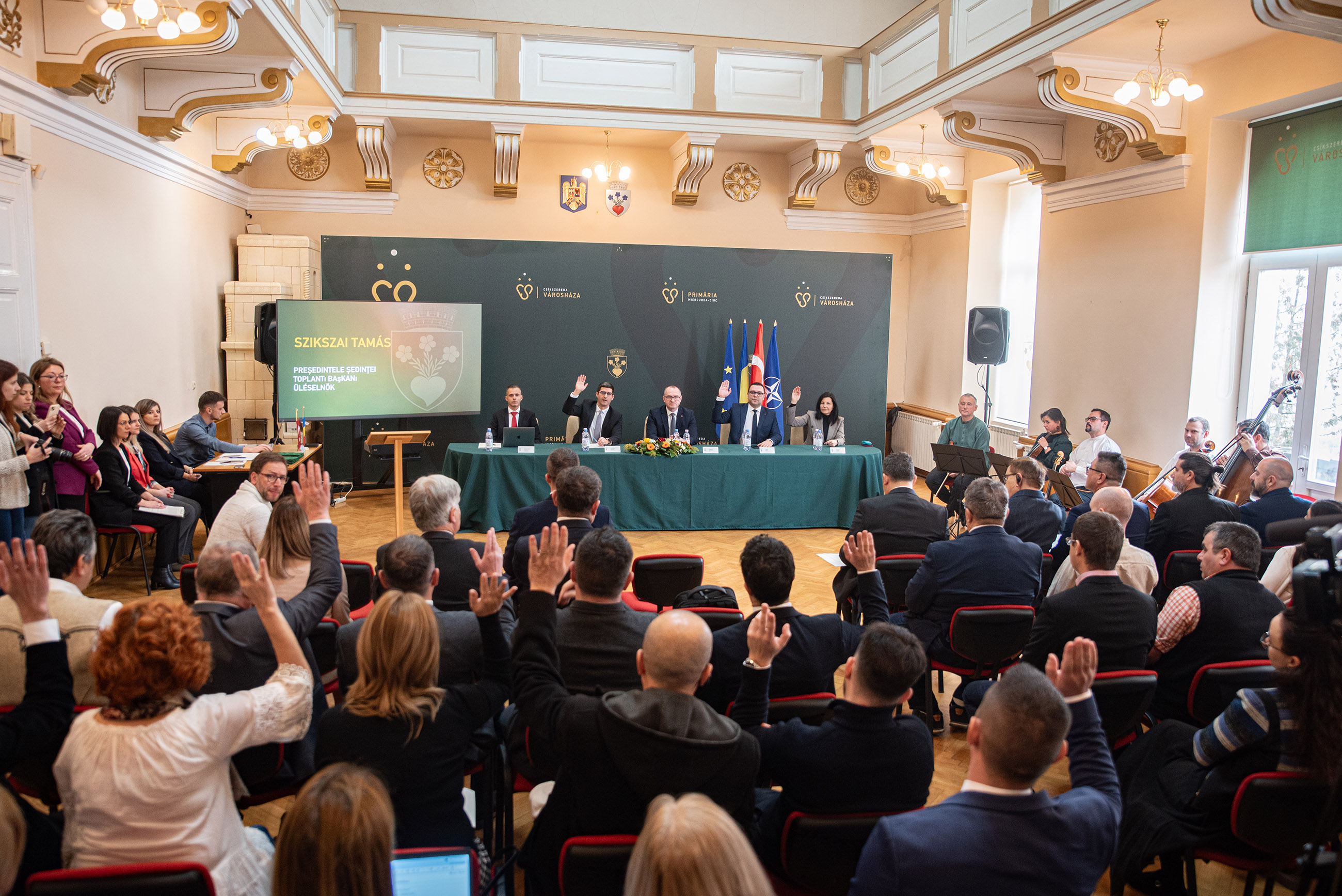 A csíkszeredai városháza dísztermében az ünnepélyes, rendhagyó testületi ülés a török küldöttség köszöntésével, valamint a protokollnak megfelelően a román és a török himnusz elhangzásával kezdődött a Csíki Kamarazenekar és a Codex Régizene együttes előadásában. A küldöttség tagjai Volkan Nallar polgármester, Burak Boğaç Baykal alpolgármester, Ünal Durgut tanácsos, Fatih Erge, a Törökországi Székely Nemzeti Tanács képviselője és Zeynel Cömert tolmács.