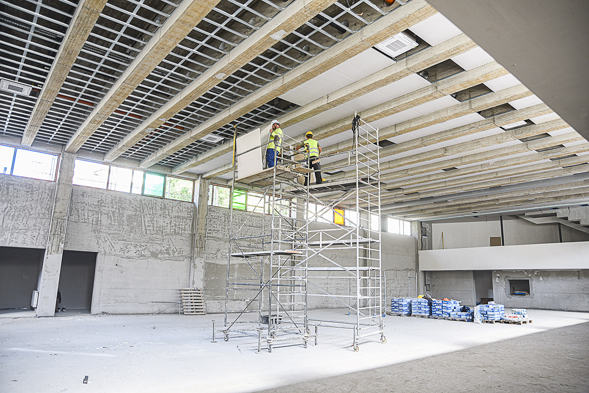 – A jövő heti tanévkezdésig lehetetlen a kivitelezés lezárása és átvételezése. A munka ütemterv szerint halad, jelenleg a kőburkolatokkal, területrendezéssel, a nyílászárók szerelésével, a fedett pálya hangszigetelt álmennyezetének szerelésével és a felszíni pálya rétegrendjeinek lefektetésével, a védőháló-szerkezet építésével dolgoznak. Szerelik továbbá az üvegből épülő függönyfalat is, és épületgépészeti munkák, valamint finismunkák is folyamatban vannak egyes kiszolgálóhelyiségek esetében