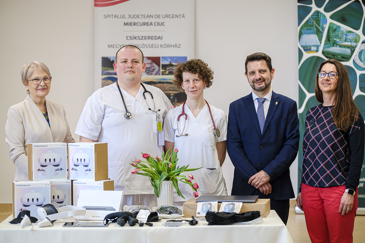 Hat speciális VR-szemüveget adott át csütörtökön délben a Csíkszeredai Megyei Sürgősségi Kórház intenzív terápiás osztályának Magyarország Csíkszeredai Főkonzulátusa és a Csíki Vállalkozók Egyesülete. A több mint harmincezer lejes adományt a XI. Jótékonysági Katalin-bál bevételének egy részéből biztosították.