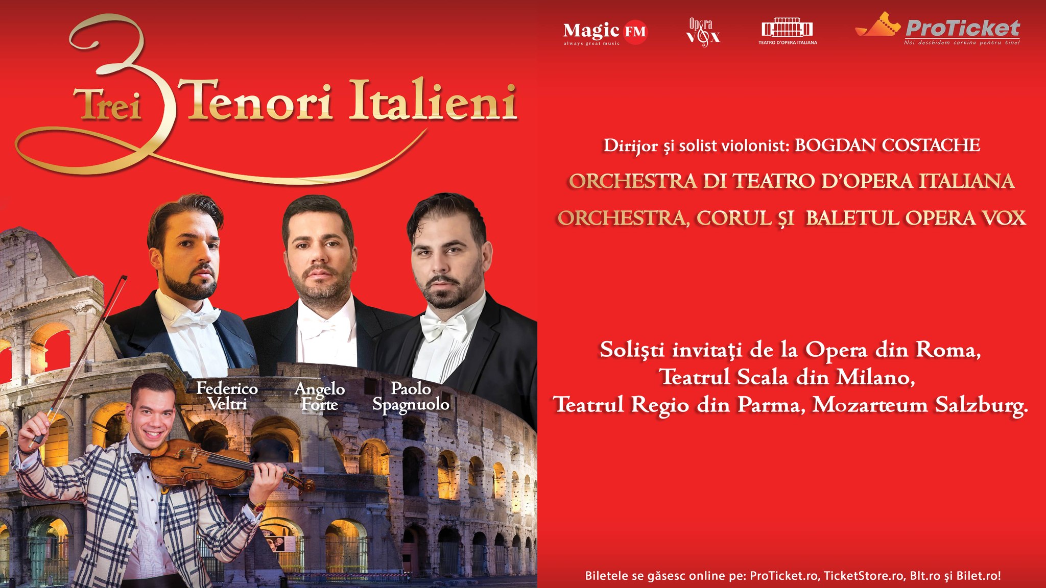 Március 19-én, jövő szerdán 20 órától látható a Trei tenori italieni előadás a csíkszeredai Művészetek Házában. Belépő: 190 lej és 210 lej. A jegyek megvásárolhatók elővételben online a www.ticketstore.ro oldalon. Az esemény tisztelgés a legendás José Carreras, Plácido Domingo és Luciano Pavarotti előtt, akik hangjukkal és előadásmódjukkal meghódították az egész világot.