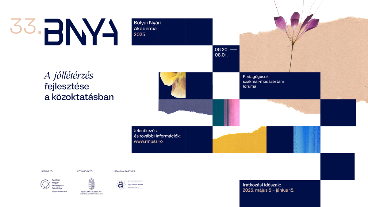 Június 15-ig jelentkezhetnek az érdeklődők a Romániai Magyar Pedagógusok Szövetsége által szervezett 33. Bolyai Nyári Akadémiára, melynek idei fő témája a jóllétérzés fejlesztése a közoktatásban. Idén hat héten keresztül, heti négy alkalommal, várhatóan 430 pedagógus részvételével, 11 helyszínen (tíz hazai és egy magyarországi) szervezik meg az eseményt, a megnyitót július 14-én, Szovátán tartják a Teleki Oktatási Központ Bíró István termében. A jelentkezési feltételekről az érdeklődők az RMPSZ honlapján találnak információkat.