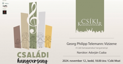 Zenei korszakok címmel hirdet családi hangversenyt a Csíki Kamarazenekar, amelyet kedden 18 órától tartanak a Csíki Moziban. A szervezők ez alkalommal időutazásra hívnak, ahol az elmúlt korok zenei stílusait és stílusváltásait tárják az érdeklődők elé. Az őskortól a 20. századig tekintenek végig, ahol hallhatunk majd többek között középkori, reneszánsz táncokat, súlyosabb barokk zenét, könnyed Mozart-muzsikát; majd a vérbő romantikus dallamok után a 20. század sokszínűségét mutatják meg, amelyben a filmzenék világát is érintik. Az előadás narrátora Adorján Csaba lesz. A felnőttjegy ára 20 lej, a gyermek- és nyugdíjasjegy 10 lej, elővételben válthatók a Csíki Mozi jegypénztárában.