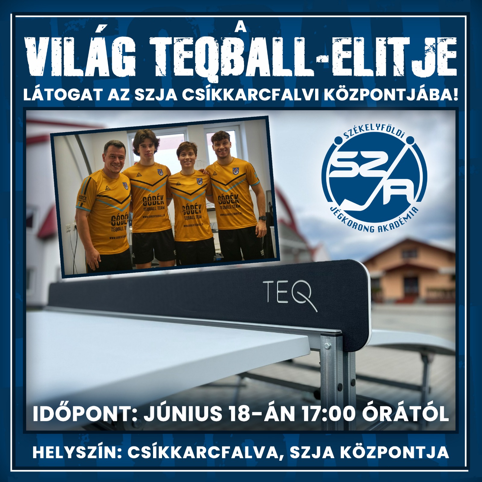 A világ teqballelitje látogat a Székelyföldi Jégkorong Akadémia (SZJA) karcfalvi központjába szerdán 17 órakor. Az érdeklődők olyan kiváló játékosokkal találkozhatnak, mint Györgydeák Apor, Marek Pokwap, Barabás Kinga és Ilyés Szabolcs. A résztvevők közönségtalálkozón beszélnek majd pályafutásukról, sikereikről, céljaikról, és arra is lesz lehetőség, hogy a világranglista élmezőnyéhez tartozó sportolókkal közösen kipróbálják ezt az egyre népszerűbb sportágat. A belépés ingyenes.