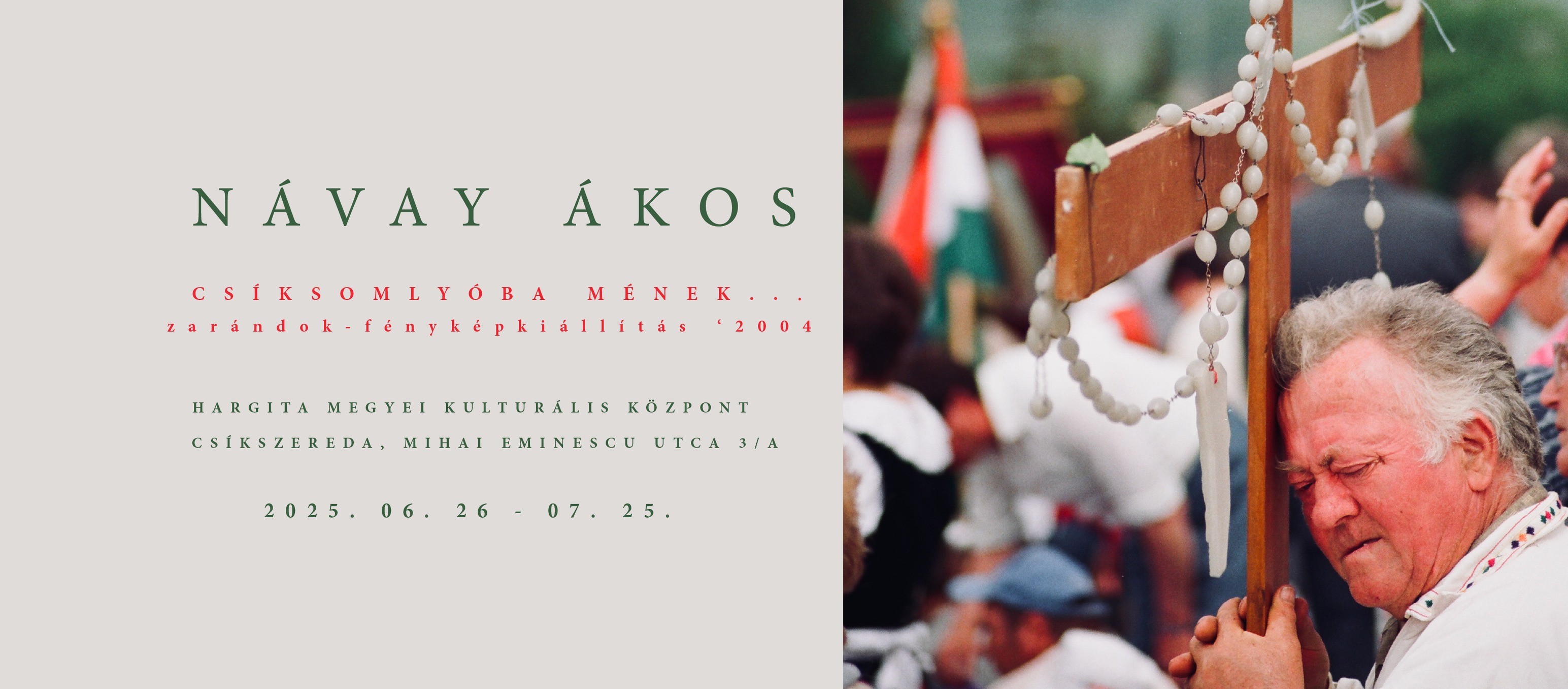 Návay Ákos Csíksomlyóba mének... című fotókiállítását nyitják meg csütörtökön 18 órakor a Hargita Megyei Kulturális Központban (Csíkszereda, Mihai Eminescu utca 3/A szám). A magyarországi fotóművész évtizedek óta kutatja a vallásos és népi kultúra mélyebb rétegeit, a Csíksomlyóba mének… című kiállítása a híres csíksomlyói pünkösdi búcsú lelki és közösségi élményét örökíti meg analóg fényképeken keresztül. A képek a zarándoklat csendes pillanatait, az összetartozás és hit erejét ragadják meg, a kiállítás egyszerre szól hagyományról, hitről és az ember belső útjáról. A belépés ingyenes, a tárlat július 25-ig tekinthető meg. Szervezők: Hargita Megyei Kulturális Központ, Megyeháza Galéria, Hargita Megye Tanácsa.