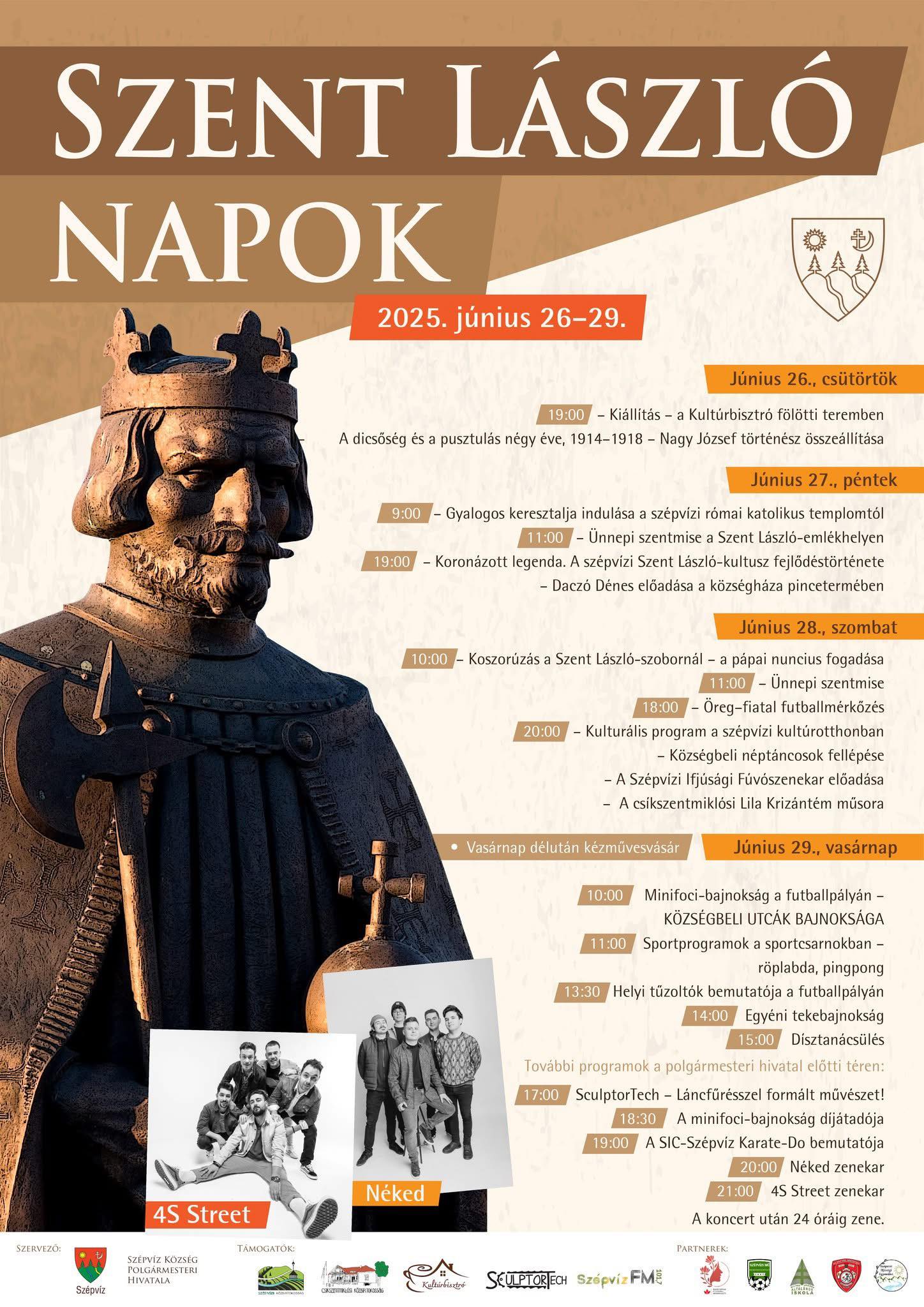 Vasárnap estig tartó Szent László-napi ünnepséget szerveznek Szépvízen. A rendezvényen kulturális programok, előadások, zarándoklat, kézművesvásár, sportesemények várják az érdeklődőket. Vasárnap 20 órától fellép a Néked zenekar, 21 órától pedig a 4S Street koncertezik.