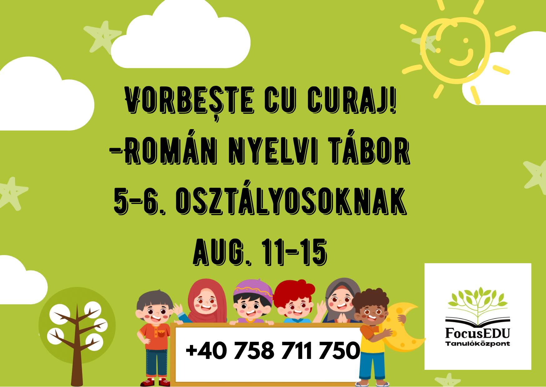 Vorbește cu curaj! címmel szerveznek román nyelvi tábort 5–6. osztályos diákok számára augusztus 11–15. között Csíkszeredában, a FocusEdu Tanulóközpontban (Decemberi forradalom utca 14. szám). A tábor célja, hogy a gyermekek bátran, szorongás nélkül használják a román nyelvet, és önbizalmat szerezzenek a mindennapi kommunikációhoz. Az ötnapos tábor során a tanulás mellett napi három étkezést is biztosítanak. Jelentkezni a 0758–711750-es telefonszámon lehet.