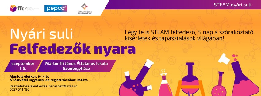 STEAM nyári suliba hívja az érdeklődő diákokat a Székelyudvarhelyi Közösségi Alapítvány, amely szeptember 1-5. között izgalmas és interaktív tanulási lehetőségeket kínál a 9-14 éves diákok számára. Az esemény célja, hogy felkeltse a gyerekek kíváncsiságát a tudományok iránt, szórakoztató és gyakorlatias módon bemutatva a tudomány, technológia, mérnöki tudományok, művészet és matematika (STEAM) világát. A szeptemberi ötnapos eseménynek a szentegyházi Mártonffi János Általános Iskola ad otthont. A nyári sulin való részvétel ingyenes, de előzetes regisztrációhoz kötött. Regisztrálni a bernadett@szka.ro e-mail címen lehet.