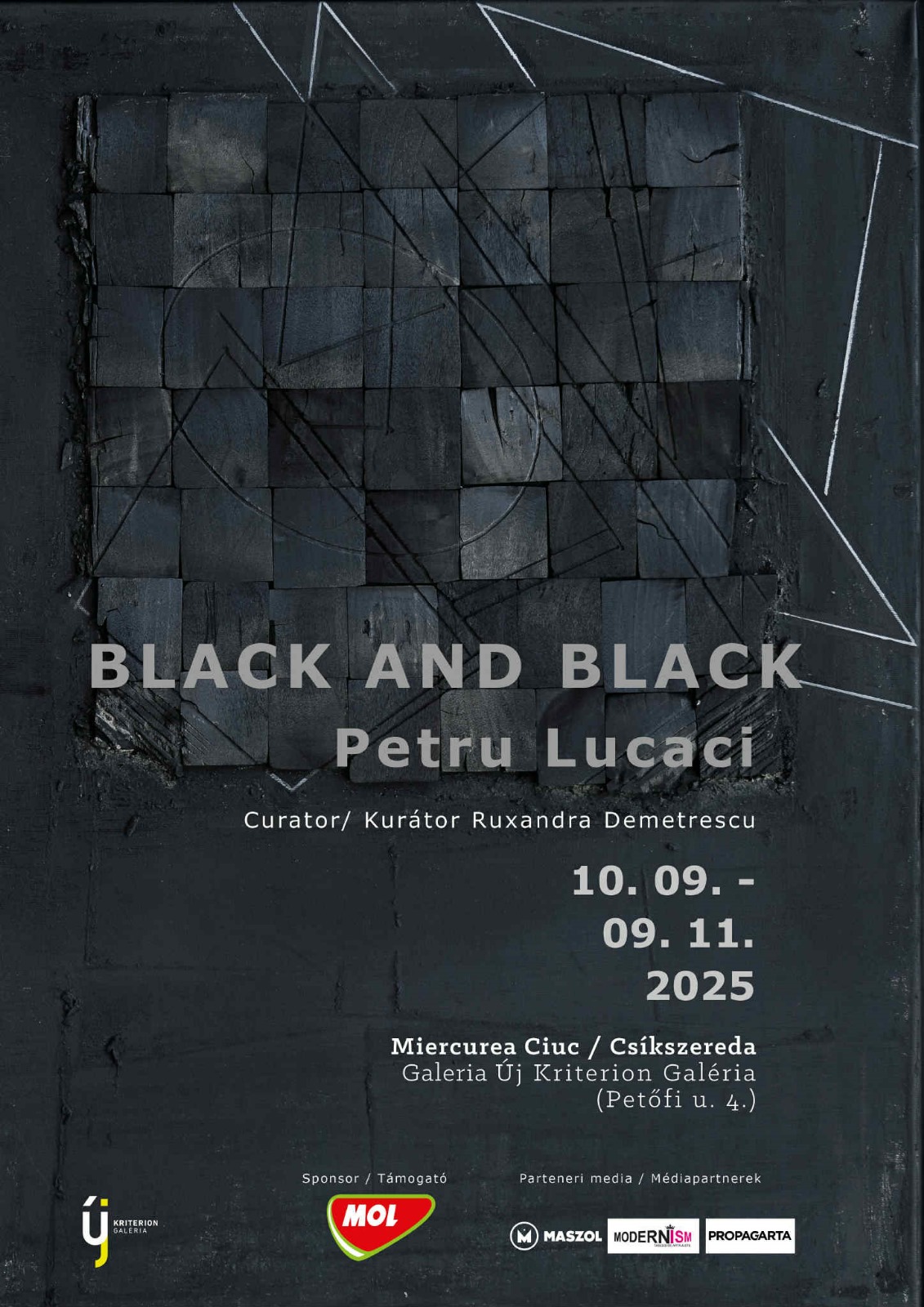 Petru Lucaci festőművész Black and Black című kiállítását nyitják meg szerdán 18 órakor a csíkszeredai Új Kriterion Galériában. A tárlat olyan vonulatot tekint át, amely rögtön 1990 után keletkezett a festőművész alkotásában, attól kezdve, hogy a domináns szín számára a fekete lett, amint az megnyilvánul a Noctumbre (kb. Éjárnyak), Alb/Negru (Fehér/Fekete), Night Shadows, Clarobscur (Fény–árnyék) vagy Black-based Cocktail című ciklusaiban. Petru Lucaci így fogalmaz: „A fekete széles jelentésmezőt rejt magában, ugyanakkor hatalmas kifejezőerővel bír. Megállapíthattam, hogy a fekete anyag olyan energiákat hordoz, amelyeket általában nem aknázunk ki eléggé, a feltételezett negatív töltetével kapcsolatos előítéleteink pedig ártanak a festménynek, hiszen azt lényegileg a szín jelenléte határozza meg.” A november 9-ig megtekinthető kiállítás kurátora Ruxandra Demetrescu.