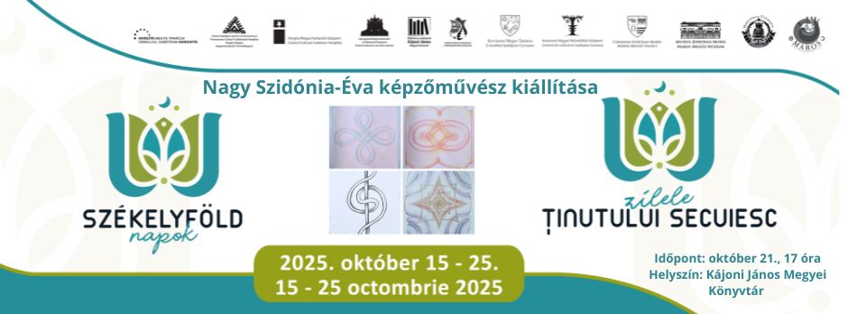 Nagy Szidónia-Éva ünnepi képzőművészeti kiállítását nyitják meg a csíkszeredai Kájoni János Megyei Könyvtárban kedden 17 órakor. Az alkotások a színek, formák és ritmusok találkozásából születnek, a művekben a hagyományos motívumvilág sajátos egységbe rendeződik: ívek, fonatok, összekapcsolódó vonalak jelenítik meg a közösség, a harmónia és a belső rend üzenetét. A tárlatot Túros Eszter művészettörténész nyitja meg. A kiállítás két héten át lesz látogatható a könyvtárban, az esemény a Székelyföld Napok programsorozat részeként valósul meg.
