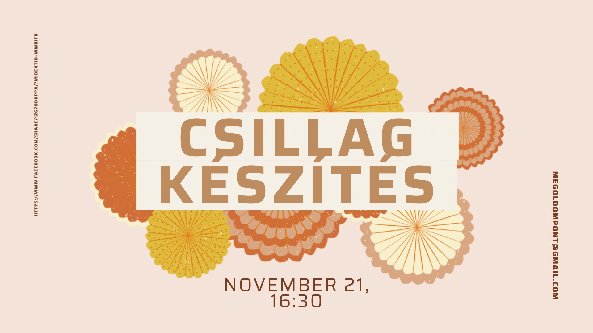 Ünnepekre hangoló műhelymunkát szervez gyermekek számára a Megoldom Pont Csíkszeredában, a Megoldom Pont Közösségi Műhelyben jövő pénteken 16.30-tól. Az eseményen részt vevők ablak-, illetve ajtódíszeket készíthetnek. Jelentkezni a 0741–152087 (Enikő) vagy 0799–679326 (Zoltán) telefonszámok egyikén lehet, jelentkezési határidő ma 21 óra.