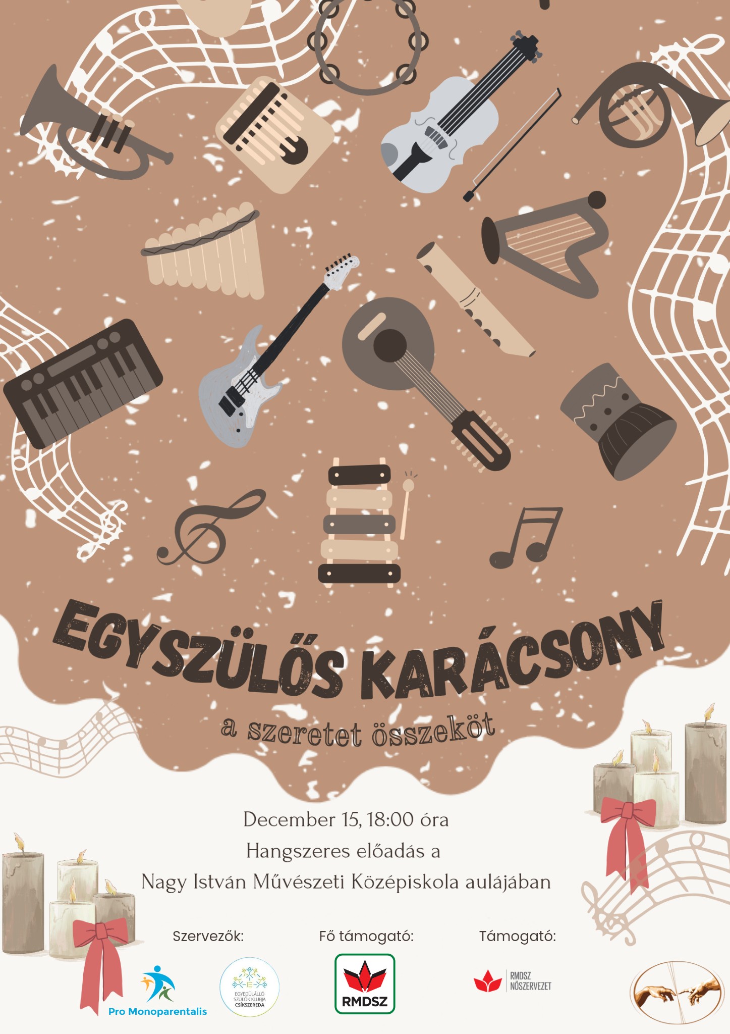 A szeretet összeköt címmel szerveznek egyszülős karácsonyi ünnepséget hétfőn 18 órától a csíkszeredai Nagy István Művészeti Középiskola aulájában. Az eseményre gyermeküket egyedül nevelő szülőket várnak, számukra készül zenés ünnepi előadással az iskola XI. A osztálya, emellett kapcsolódhatnak egymáshoz, megpihenhetnek és megélhetik az összetartozás erejét, a gyermekeket pedig meglepetések is várják. A részvétel ingyenes, de regisztrációhoz kötött, ez megtehető az esemény közösségi oldalán levő űrlap kitöltésével. Szervezők: Egyedülálló Szülők Klubja Csíkszereda, Pro Monoparentalis Egyesület, támogatók: RMDSZ, RMDSZ Nőszervezete.