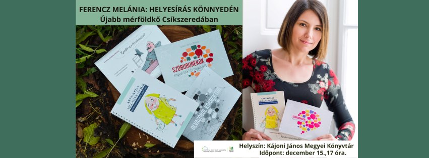 Csíkszeredába látogat Ferencz Melánia, az idén 13 éves Szövegkovács nyelvőrző műhely egyik alapítója, aki három rendhagyó, játékos kiadványt – Anyanyelvi villámtanácsok, Szóbuborékok és Rendőr-e a fekvőrendőr? –, valamint legújabb, Olvasóból korrektor című kötetét mutatja be hétfőn 17 órától a Kájoni János Megyei Könyvtárban. A szerző a nyelvőrző műhelyt 2012 nyarán alapította a Csíkszeredában élő, lapunk korrektoraként dolgozó első unokatestvérével, Kósa Erikával együtt, a munkájukat pedig 2015 szeptemberében MÚRE-díjjal ismerte el a Magyar Újságírók Romániai Egyesülete.
