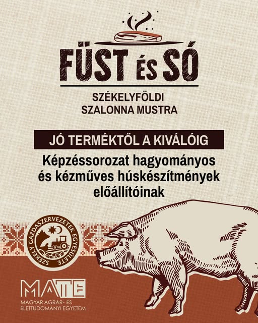 A Székely Gazdaszervezetek Egyesülete január 30–31-én és február 27–28-án szervezi meg a Füst és só – Székelyföldi szalonnamustra keretében a Jó terméktől a kiválóig című képzéssorozatát, amely hagyományos és kézműves húskészítmények előállítóinak kínál átfogó szakmai továbbképzést. A program helyszíne a csíkszeredai Magyar Ügyek Háza lesz. A képzés célja, hogy segítséget nyújtson azoknak, akik szeretnék termékeik minőségét fejleszteni, és a jóból következetesen kiváló húskészítményeket előállítani. Az előadók a Magyar Agrár- és Élettudományi Egyetem elismert szakemberei lesznek. A részvételi díj 1000 lej a teljes, két alkalomból álló képzéssorozatra (2 × 2 nap), és ebédet is biztosítanak. A részvétel előleg befizetéséhez kötött, amelynek részleteiről a jelentkezés során adnak tájékoztatást. Érdeklődni és jelentkezni Miklós Szende falugazdásznál lehet a miklos.szende@szekelygazda.ro e-mail-címen vagy a 0745–410631-es telefonszámon.
