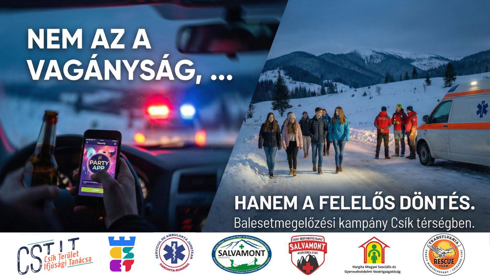 A csíkszentkirályi kultúrotthonba is elviszik a Nem az a vagányság című balesetmegelőzési kampányt kedden 18 órára, amelynek célja, hogy közérthető, őszinte és elgondolkodtató módon hívja fel a figyelmet a felelős közlekedés fontosságára, különösen a fiatalok körében. Az eseményen szó lesz a felelőtlen vezetés és közlekedési magatartás következményeiről, a „vagányság” és a valós kockázatok közötti különbségről, valamint arról, hogy miért nem menő az, ami veszélybe sodor másokat. A részvétel ingyenes.