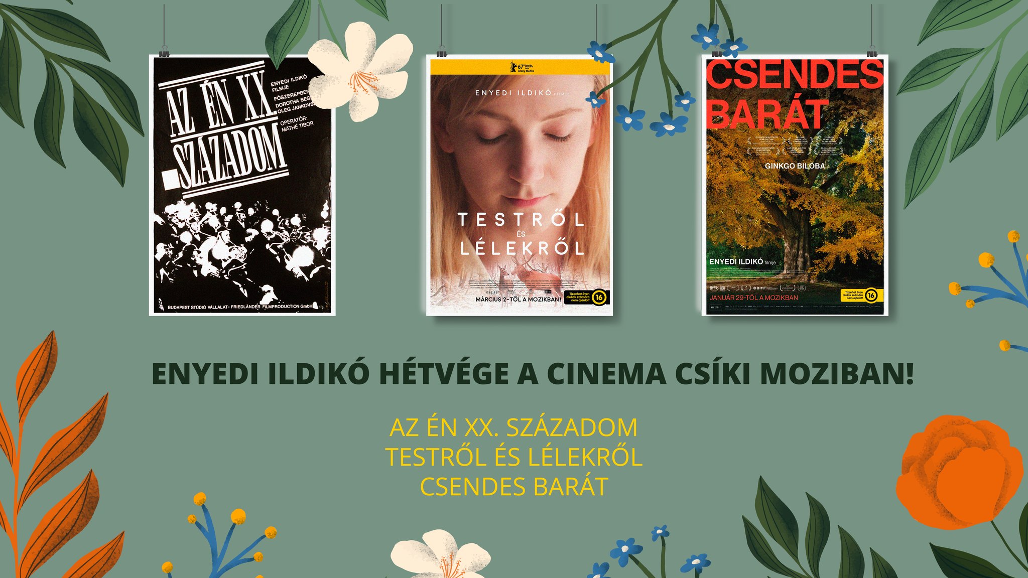 Vannak rendezők, akik nemcsak filmeket készítenek, hanem egész világokat építenek körénk. Enyedi Ildikó pont ilyen: lírai képei, finom humora és az emberi lélek legmélyebb rezdülései most egy teljes hétvégére beköltöznek Csíkszeredába a Bad Unicorn közreműködésével. Pénteken 20 órától vetítik Az én XX. századom (1989) című filmet, amely cannes-i Arany Kamera-díjas klasszikus, és amit minden filmkedvelőnek látnia kell. Szombaton 17-től a Testről és lélekről (2017) című filmet láthatjuk, az Arany Medve-díjas, Oscar-jelölt csoda, ami bebizonyította, hogy az álmok összekötnek minket. Vasárnap 16 órától a Csendes barát (2025) lesz megtekinthető, amely frissen a Velencei Filmfesztiválról érkezik, és hat nemzetközi díjat zsebelt be. A vetítések a Csíki Moziban lesznek, jegyek válthatók a prokult.ro honlapon.