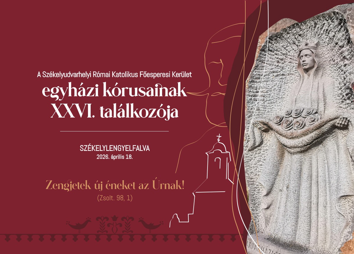 Magasztaló és dicsőítő énekszóval töltik be az udvarhelyszéki egyházi kórusok a székelylengyelfalvi Árpád-házi Szent Erzsébet-templomot szombaton: idén a kistelepülés ad otthont a Székelyudvarhelyi Főesperesi Kerület egyházi kórusai XXVI. találkozójának. A kórustalálkozó jelmondatául a Zengjetek új éneket az Úrnak! zsoltárrészletet választották a szervezők, emlékeztetve arra, hogy a 2026-os év az egyházmegyében a keresztség éve, az együttes éneklés pedig egyszerre ünnep és hitvallás. A több mint negyed évszázados hagyományt megélt rendezvényen tizennyolc kórus fog fellépni, különféle egyházi énekeket adnak elő. A kórustalálkozót 10 órakor ünnepi szentmise nyitja meg, ezt követően a kórusok sorban előadják a betanult műveket. Mivel a templomban a helyek száma korlátozott, a szervezők biztosítják, hogy a templom közelében, szabadtéren is látható és hallható legyen a teljes program. A rendezvény minden érdeklődő előtt nyitott.