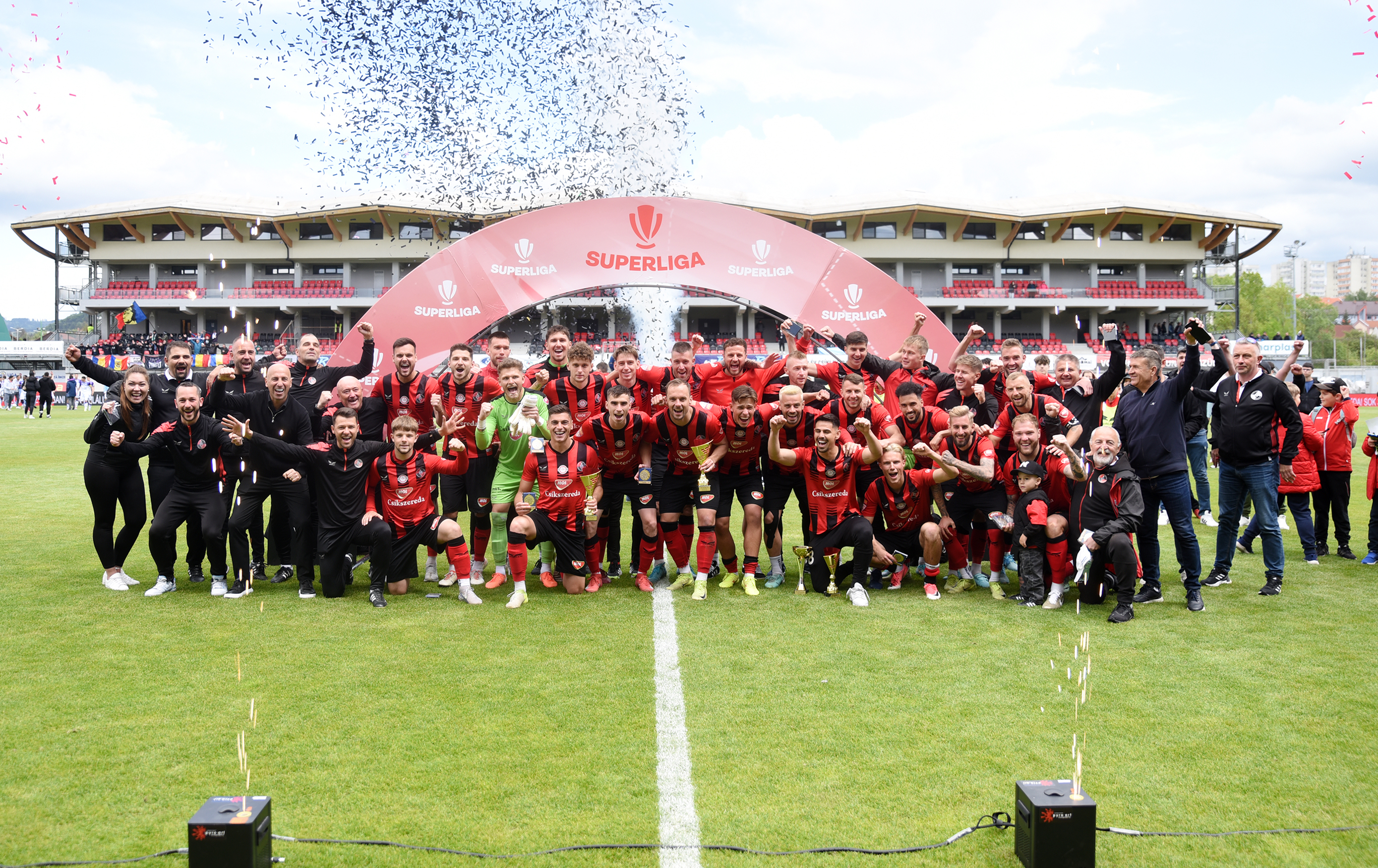 Az alapszakasz-győzelem után végül a labdarúgó 2. Liga bronzérmeseként zárta a 2024/2025-ös idényt az FK Csíkszereda. Az már korábban eldőlt, hogy a csapat a 2025/2026-os szezonban a hazai labdarúgás élvonalában játszhat, vasárnap pedig hiába szenvedtek vereséget vendéglátóként a piros-feketék, a Szuperligába jutást méltóképpen ünnepelték meg a mintegy kétezer fős csíki szurkolóközönséggel.