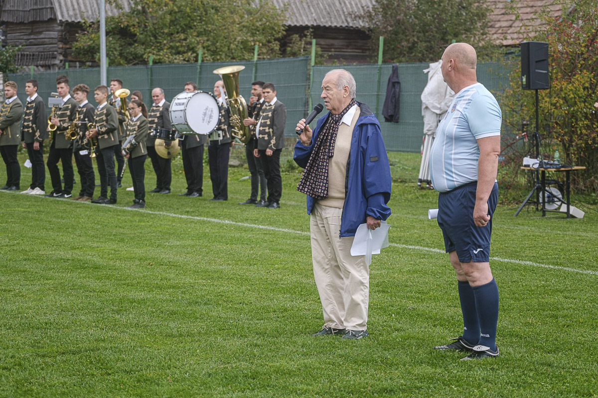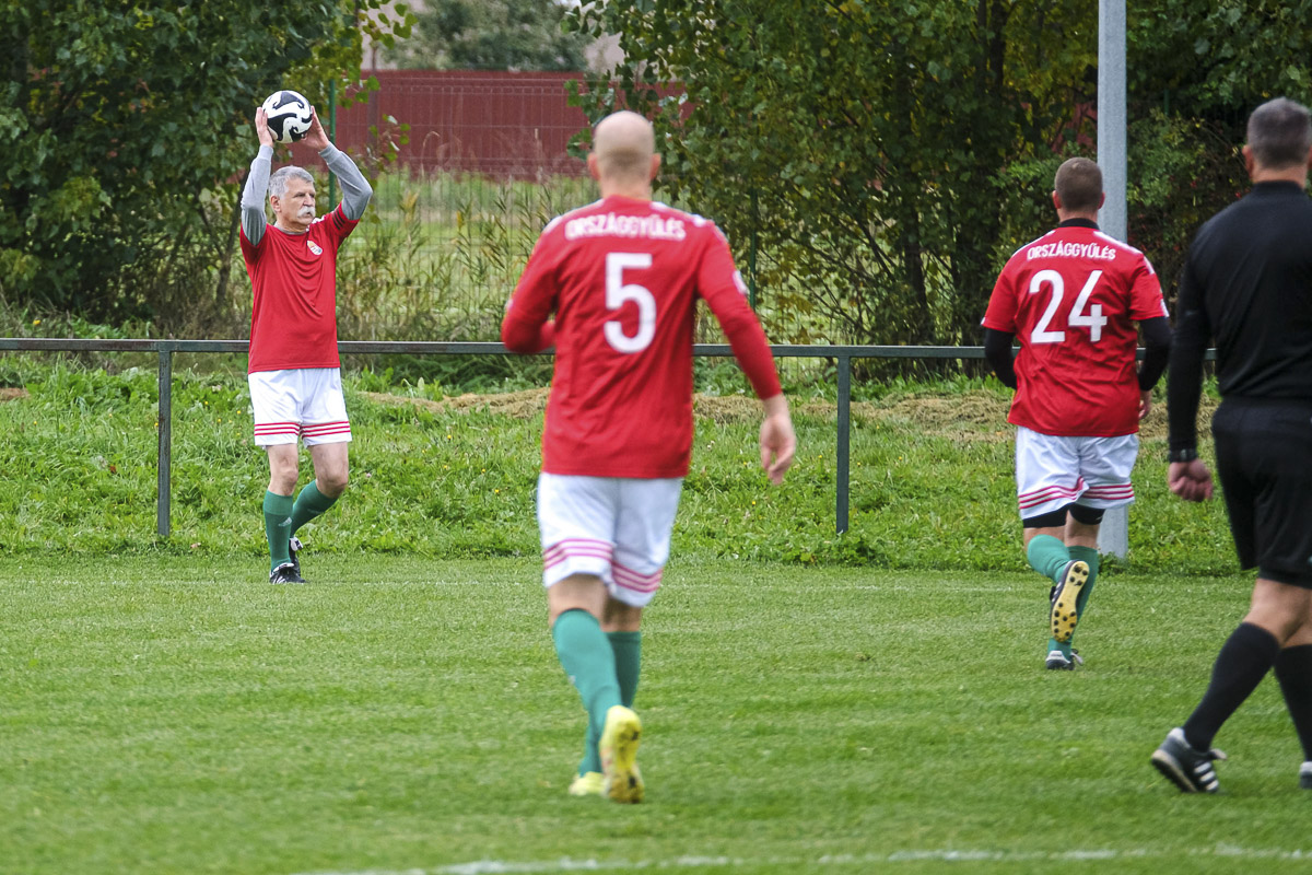 A barátságos focitornán a magyar Országgyűlés válogatottja (csapatkapitány Kövér László házelnök, képünkön), a csángó közméltóságok (csapatkapitány Polgár László elnök) és a székely közméltóságok (csapatkapitány Karda Róbert polgármester) léptek pályára.