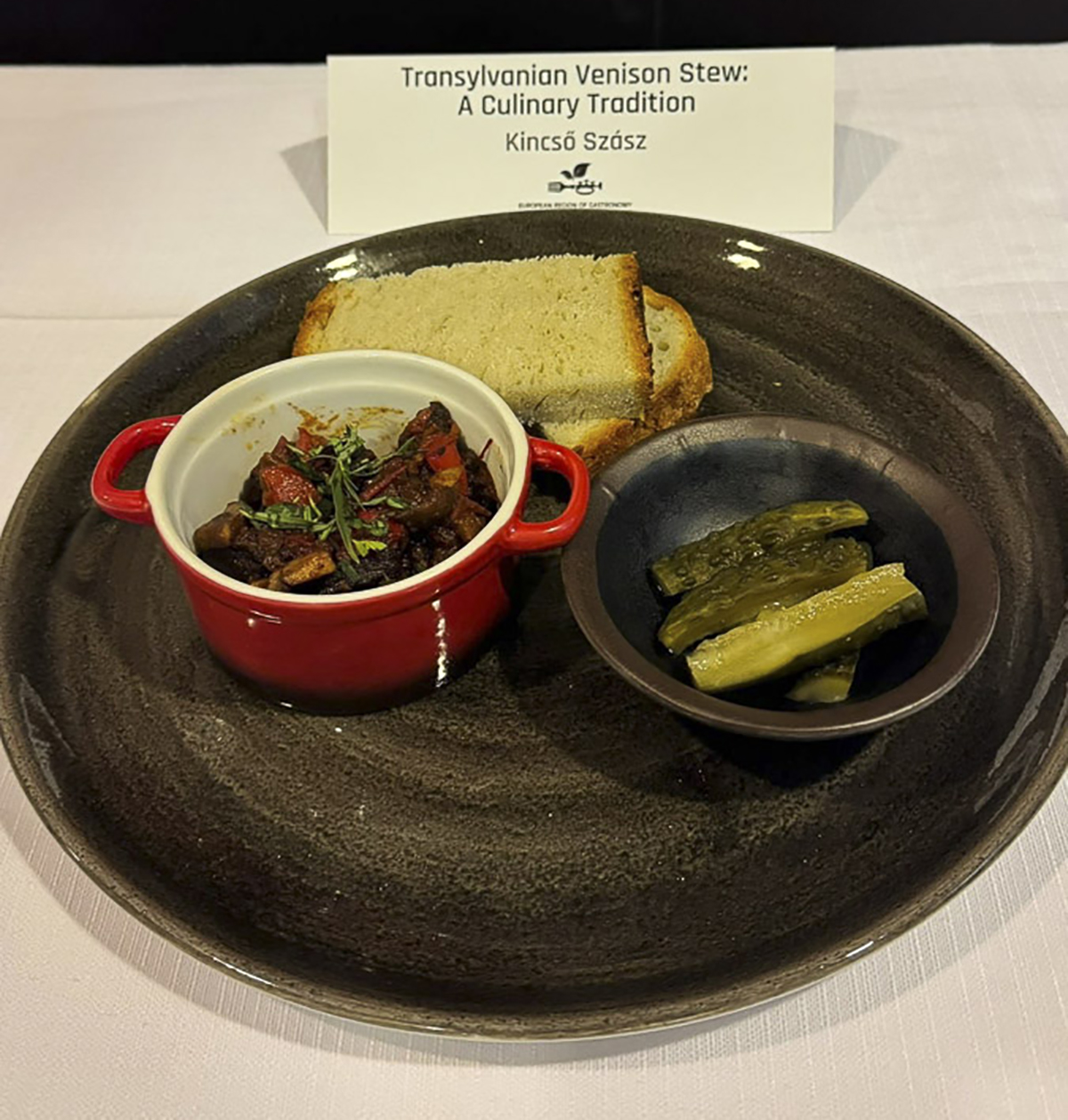 Az Európai ifjú séfek négynapos versenyére Szász Kincsőt a Visit Harghita csapata választotta ki. Az Olaszország egyik leghíresebb főzőiskolájában szervezett eseményen elsőként egy tradicionális, vidékünkre jellemző ételt kellett bemutatni a zsűrinek, amely kizárólag helyi alapanyagokból készült. Kincső szarvaspörköltet főzött, melyet házi kovászos uborkával és pityókás kenyérrel tálalt. A második napon a hagyományos étel egy innovatív, modern technikákkal készült változatát kellett a zsűri elé tenni, így szuvidált szarvasbélszín, vargánya, savanyított gombák, gomba demi-glace (sűrű, gazdag mártás), tárkonyolaj és friss tárkony került a tányérra. A versenyfogás A Kárpátok erdeinek íze fantázianevet kapta.