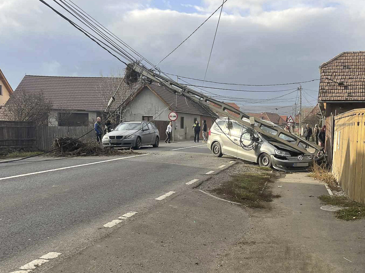 Közlekedési baleset történt vasárnap délután Madéfalván: egy Kovászna megyei személyautó 62 éves sofőrje eddig ismeretlen okokból elvesztette uralmát a jármű fölött, lesodródott az útról, és kidöntött egy villanyoszlopot, amelyről a gólyafészek egy másik autóra zuhant.