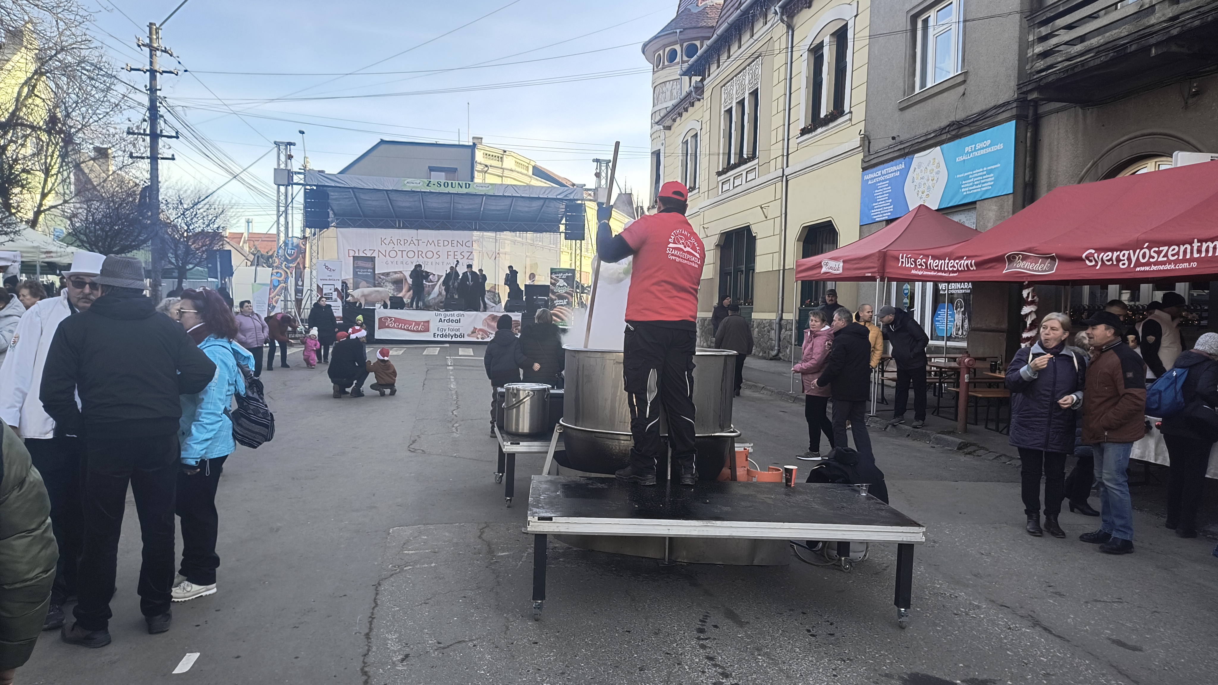 Több tucat csapat nevezett be Gyergyószentmiklós hagyományos városnapi rendezvényébe, a disznótoros fesztiválra. Már kora reggel birtokba vették sátraikat a csapatok, s kezdődött az ételek előkészítése, a sátrak díszítése. A színpadon népzene szólt, délre már kitűnő hangulat uralkodott az egész utcában, bográcsokból, sütőlapokról szálltak a jobbnál jobb illatok.