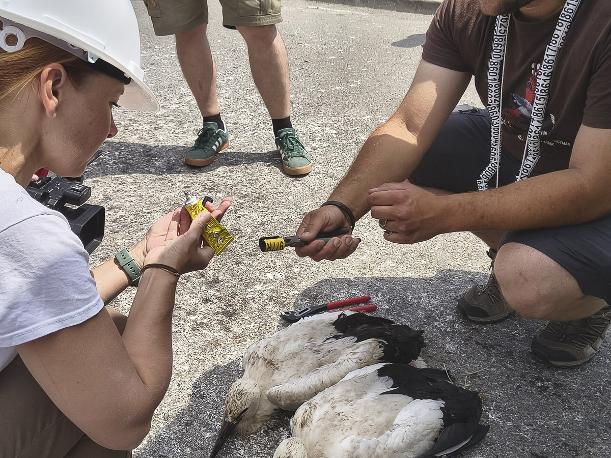 – A gyűrűzési akció alig néhány percet vesz igénybe, nyilván attól is függ, hány kis gólya van a fészekben: átlagosan három szokott lenni. A gyűrűzés ideje alatt a gólyaszülők köröznek a fészek felett, ezzel fejezve ki aggódásukat, a fiókák pedig – még nem tudván repülni – halottnak tettetik magukat, ledermednek, náluk ez létfenntartó ösztön – ismertette a folyamatot Hegyi Barna, a Békás-szoros–Nagyhagymás Nemzeti Park igazgatója. Bár laikusként azt gondolnánk, hogy egy évvel a gyűrűzés után már információkat tudunk meg a gólyákról, valójában ez sokkal hosszabb időt vesz igénybe.