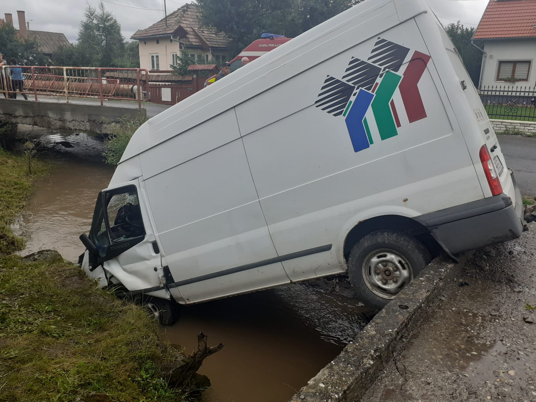 Patakba zuhant egy furgon Gyergyóremetén egy közúti baleset következtében szerda délután. A Hargita megyei tűzoltóság első információi szerint a helyszínre a tűzoltóság, a rohammentő-szolgálat (SMURD), illetve a megyei mentőszolgálat is kiszállt.
