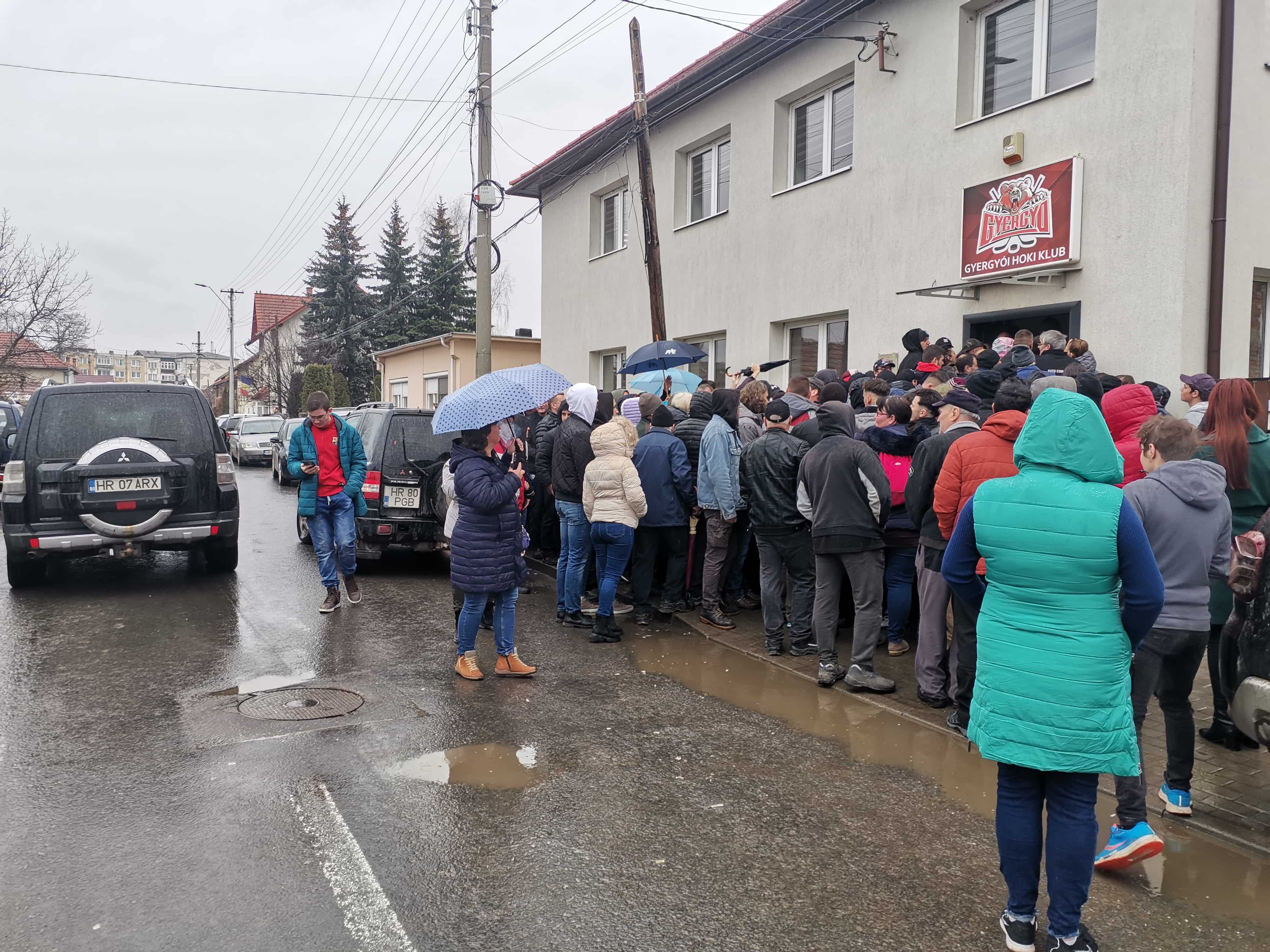 Tizenkét órától volt meghirdetve a jegyeladás a GYHK irodájánál, de már fél órával előtte alig lehetett megközelíteni a gyergyószentmiklósi Stadion utcát. Fiatalok és idősek, nők és férfiak várakoztak az ajtónál, hogy biztosan belépőhöz jussanak a végső derbire.