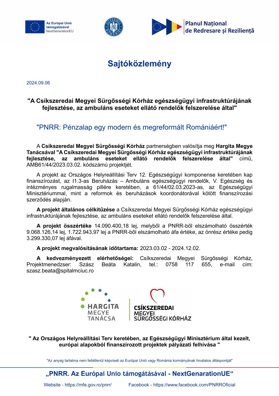 A Csíkszeredai Megyei Sürgősségi Kórház fejlesztése