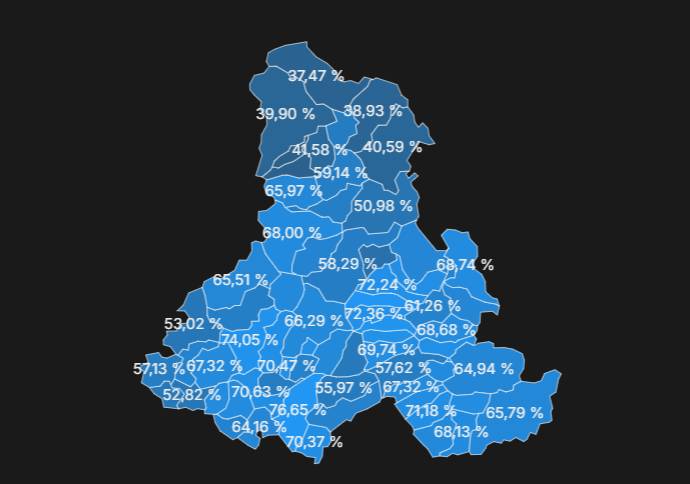 A legkevesebb szavazatot a megyében a román többségű településeken regisztrálták, különösen a megye északi részén. Bélborban csupán 37,47%-os volt a részvétel, míg Vasláb, bár az egyik legkevésbé aktív település volt, így is 48,33%-os eredményt ért el.