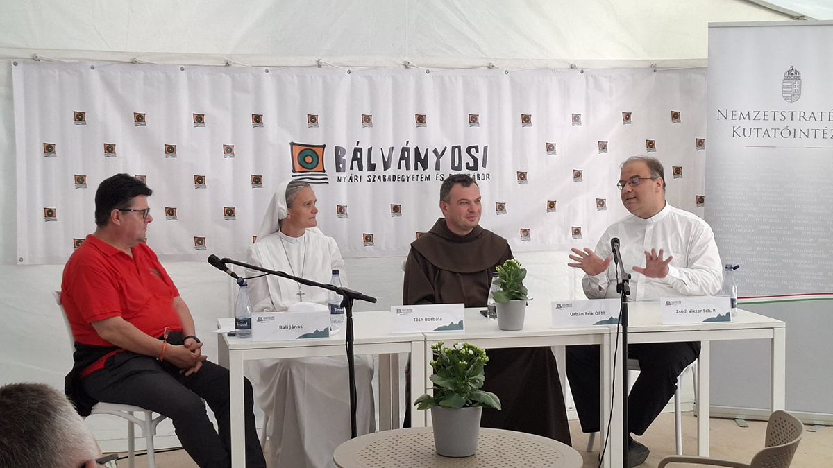 Miért fontos, hogy valaki szerzetesként és ne egyházmegyés (világi) papként szolgálja Istent? Milyen kihívások elé állítja korunk a mai szerzetességet? A világegyház tekintetében mennyire vonzó a mai fiatalok számára a szerzetesi hivatás? Hogyan állnak hivatások tekintetében a magyar szerzetesi közösségek? Mennyire befolyásolja a liberalizmus térnyerése a Kárpát-medencei hívek lelki életét, például a templomlátogatás, a szentségi élet terén? Többek között ezeket a kérdéseket tette fel három szerzetesrend képviselőjének a 34. Tusványoson Bali János, a Nemzetstratégiai Kutatóintézet kutatási igazgatója a Bornemisza Anna sátorban szervezett panelbeszélgetésen.