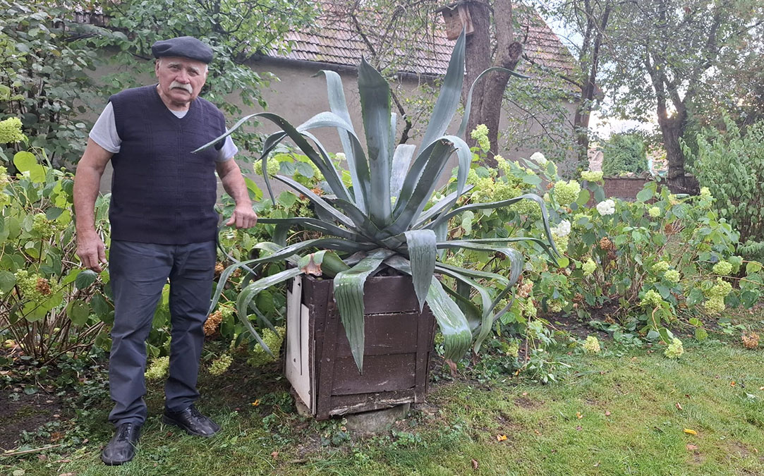 – A székelykeresztúri főtéren volt egy hatalmas példány, akkor még nem is tudtam, hogy mi a neve, csak csodáltam a növényt. Óriási volt, háromméteres szárával uralta a teret, és mindenki a csodájára járt. Hajtást akartam vásárolni, de a kertész nem ismert, és nem adott. A kobátfalvi kollégám is ott volt, ott beszélgettünk a virág mellett, mire azt kérdezte, „ez a burján kell neked?”, s azzal kihúzott egy hajtást az agávé tövéből, hozzátéve, „virágot lopni nem szégyen, bocsánatos bűn” – elevenítette fel a nyugalmazott lelkész a történet kezdetét. Megjegyezte: azóta a növény végigkísérte életútját, minden szolgálati helyére vele költözött.