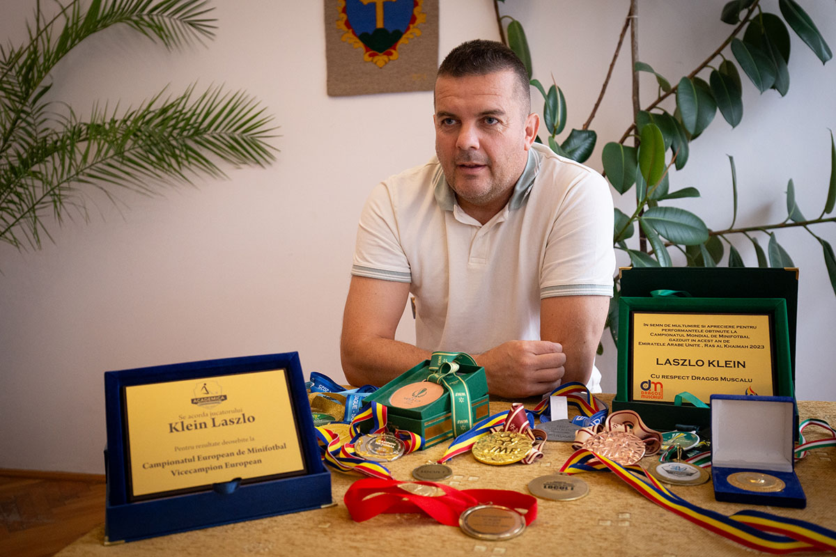 A székelykeresztúri Klein László különös pályát futott be: ahányszor letette a kapuskesztyűt, mindig visszatért – és rendre magasabb csúcsokat ért el. Futsalban hatszoros országos bajnok és 155-szörös román válogatott kapus volt, majd negyven felett újra pályára lépett, immár minifociban. A marosvásárhelyi Nova Vitával Bajnokok Ligáját nyert, a román válogatottal világbajnok lett. Civilben Székelykeresztúr alpolgármestereként dolgozik.