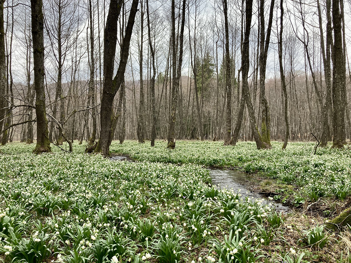 Kedves kora tavaszi kirándulás a körtúra, közel sem csak azért, amiről eddig írtam, hanem mert lefelé, a Kis-ág mentén minden évben igazi csoda vár: ha jókor vagyunk ezen a jó helyen, valóságos tőzikemezőben gyönyörködhetünk. A fehér, finom sárga „díszítést” viselő tavaszi tőzike az elegyes lomberdők, ligetek, a nyirkos, de nem túl nedves rétek lakója, és itt, Vármező környékén, de már Szováta határában, a Bekecsalján végig, kora tavasszal, többnyire már márciusban rengeteg nyílik, sok helyen összefüggő virágszőnyeget alkotva. A Nyárádmente nagy része a Natura 2000 ökológiai hálózatba tartozik, védelem alatt áll.