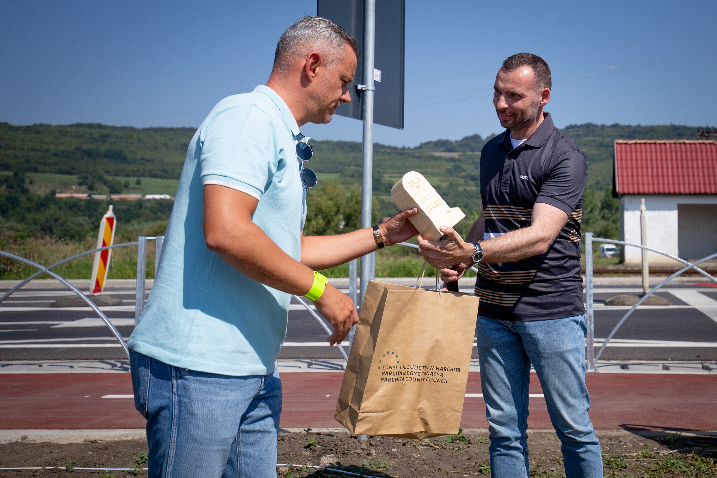 Határidő előtt elkészült, így hivatalosan is átadták szerda délelőtt a 137-es megyei út felújított szakaszát és az újonnan épült bicikliutat Székelyudvarhely és Székelykeresztúr között. Az átadót biciklis felvonulás előzte meg, az elöljárók és az érintett települések lakói közösen indultak Székelyudvarhelyről, majd kipróbálva az új bicikliutat, felsőboldogfalvi és bögözi megállóval érkeztek meg az agyagfalvi eltérőhöz, ahol ünnepélyesen átadták az új útszakaszt és bicikliutat.