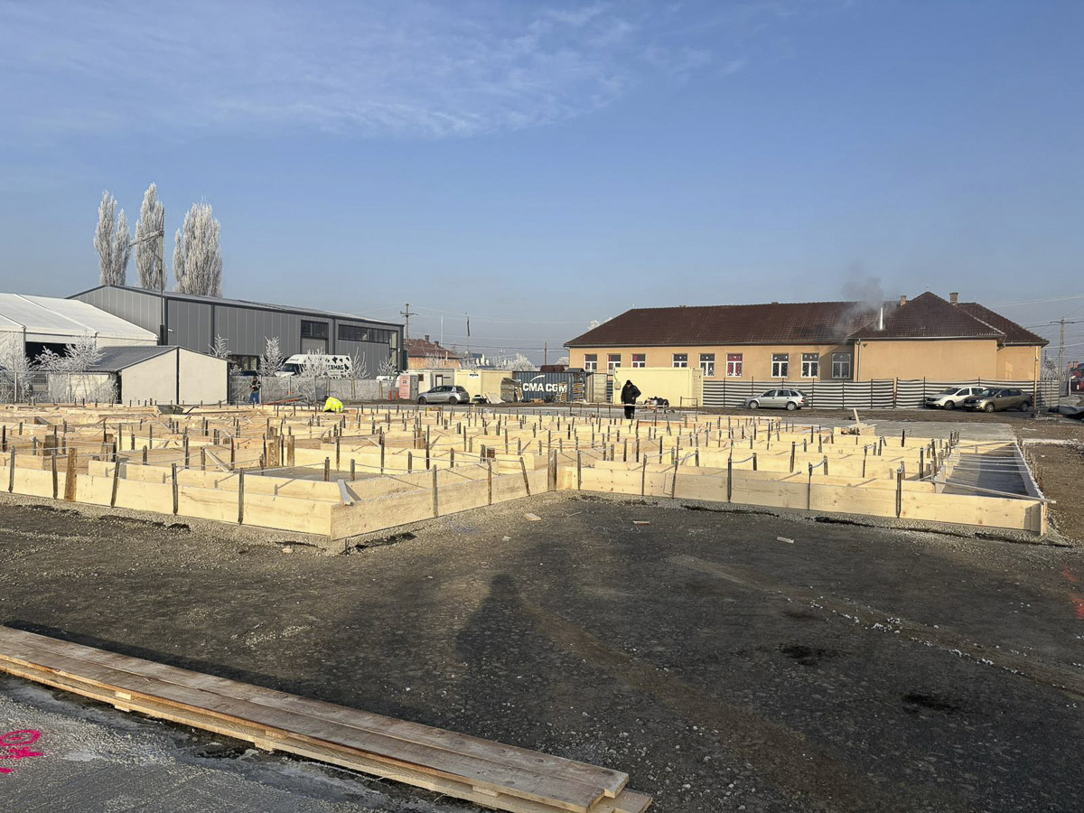 Az új csíkszentsimoni bölcsőde alapjának megöntésére készülnek a jelenlegi napközi otthon szomszédságában kijelölt építőtelepen, a kivitelező munkacsoportja éppen a betonozáshoz szükséges zsaluzási munkálatokat végzi.