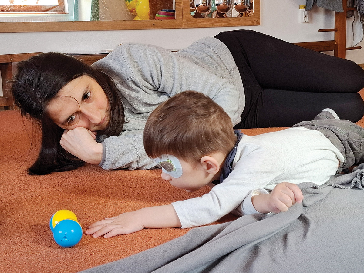 – Az érzékeléssel kezdtük, hogy Márk ad-e valamilyen válaszreakciót az érintésre. Hasfekvésben nem tudta felemelni a fejét, kevés esély mutatkozott rá, hogy mozogni tudjon. Emlékszem, nagy élmény volt, amikor a kezét tudatosan mozdította, hogy hallja a rá rögzített csengőcske hangját… Aztán eljutottunk odáig, hogy az alkarjára támaszkodik hasfekvésben, megtartja, elfordítja a fejét, átfordul hátról hasra, a lábával tolja magát. Márk hamarosan betölti a három évet, még nem kúszik, de én csodának tartom, hogy ilyen testi, idegrendszeri beállítottsággal ennyi mindent megtanult már – mondja Beáta, hogy értesse, miért ujjong az anyukával, ha a kisfiú ellöki magát és eléri az elé tartott tárgyat. A szakember nagyra tartja a szülők kitartását, látja lelki szemei előtt azt is, hogy Márk még mi mindenre lehet képes a továbbiakban. Hogy kúszni fog, majd mászni, lehet, hogy járni is. A vizsgálatok is azt igazolják, hogy a vérrögök egy része felszívódott. – Nem áltatom magam, nekem az a fejlődési mutató, hogy önmagához képest van-e haladás. És van – állapítja meg Beáta. Tudja, minden kicsi haladás több, mint a mozdulatlan ágyban fekvés. Márk az egyik szereplője Beáta életmeséjének, hisz ez a fiatalasszony nem nőtt ki a mesék világából – amire sokan mondhatják, hogy hála Istennek.