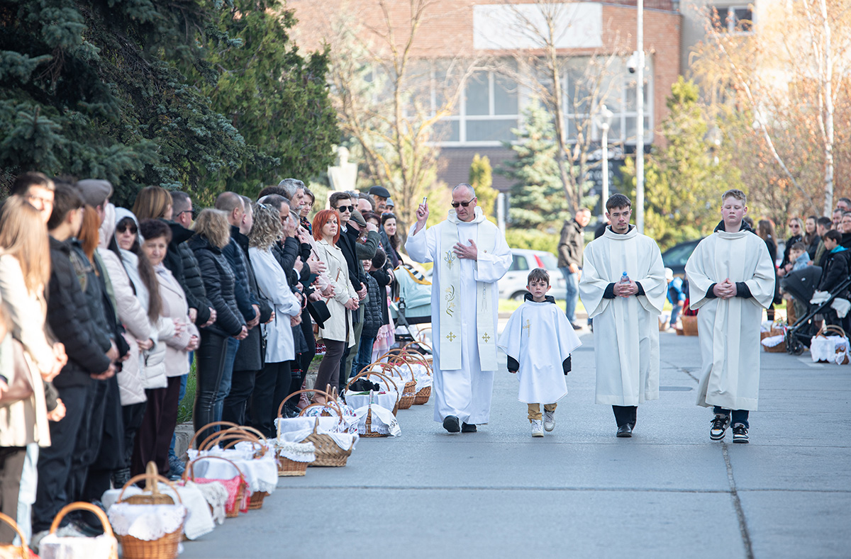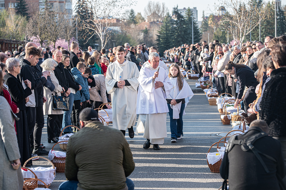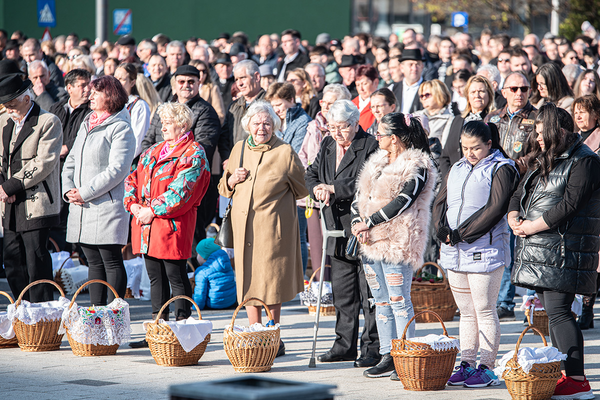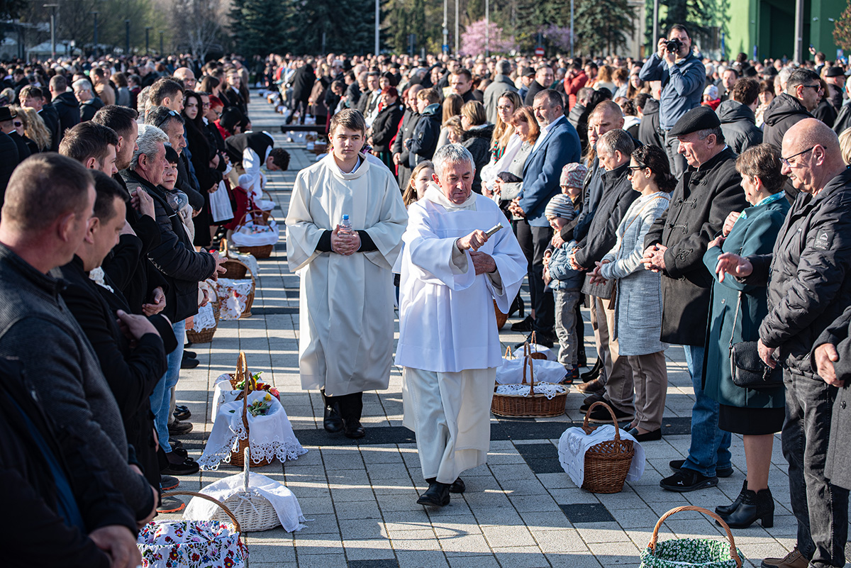 Több ezren vettek részt népviseletbe és ünneplőbe öltözve a Kárpát-medence legnagyobb eledelszentelésén a csíkszeredai Szabadság téren. A húsvétvasárnapi ételszentelésen Tamás József nyugalmazott segédpüspök áldotta meg a tele kosarakat.