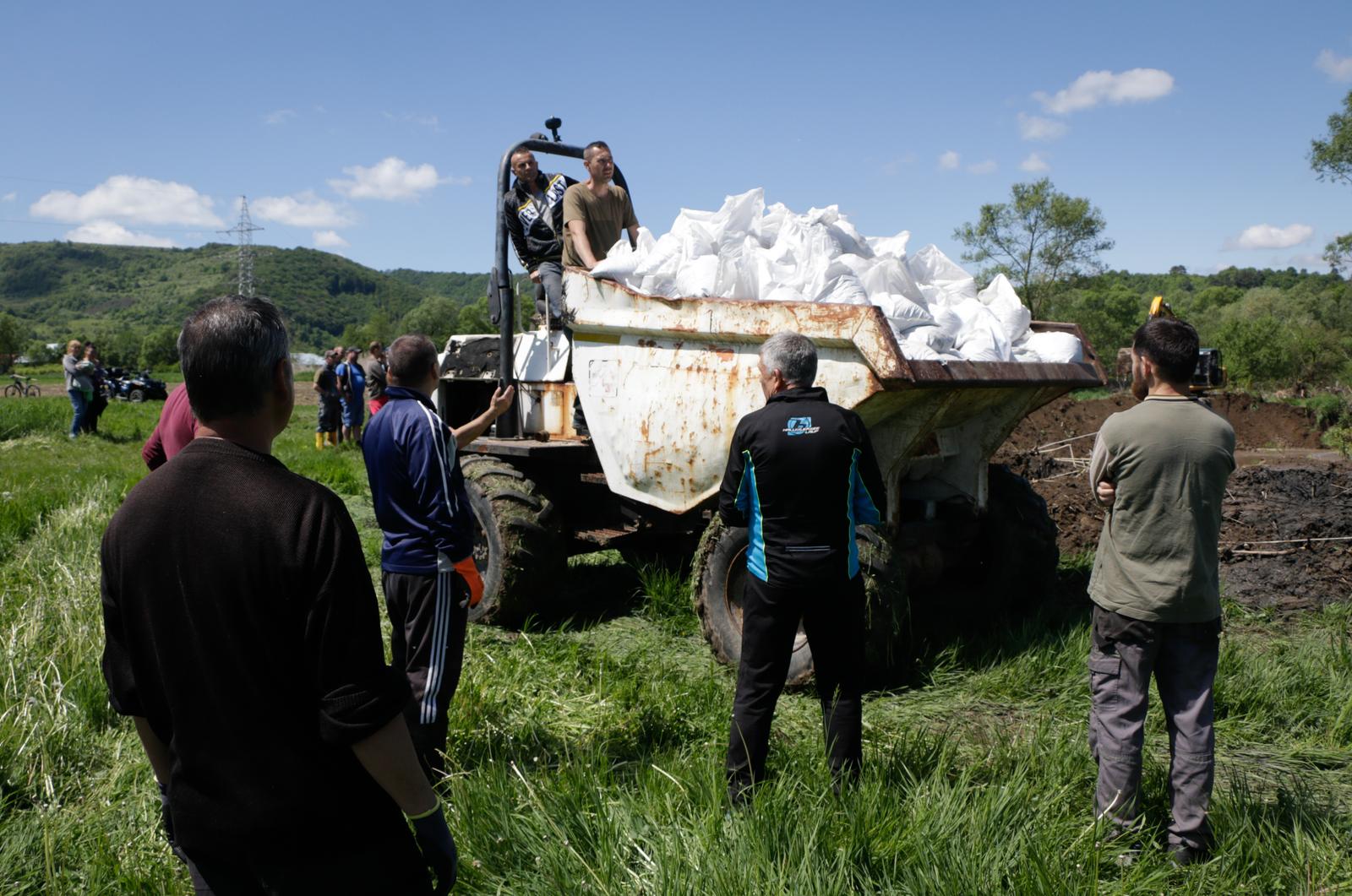 Nem hivatalos forrásból arról is értesültünk, hogy a vízügyi hatóság a szivattyúzott vizet az alsósófalvi mezőgazdasági területekre árasztja, melynek okán a helyiek közmunkát kezdeményeztek: kotrógéppel, homokzsákokból és fákból rögtönzött gáttal próbálják elterelni az elvezetett folyóvizet.